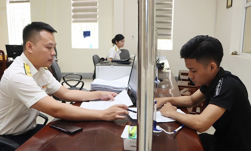 Công chức thuế hướng dẫn, hỗ trợ người nộp thuế thực hiện thủ tục hành chính thuế. Ảnh: Phan Trâm