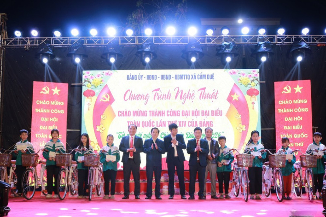 Tối 30/1, xã Cẩm Duệ tổ chức chương trình nghệ thuật chào mừng thành công Đại hội Đảng toàn quốc lần thứ XIV, Tết vì người nghèo và chào Xuân Bính Ngọ năm 2026.