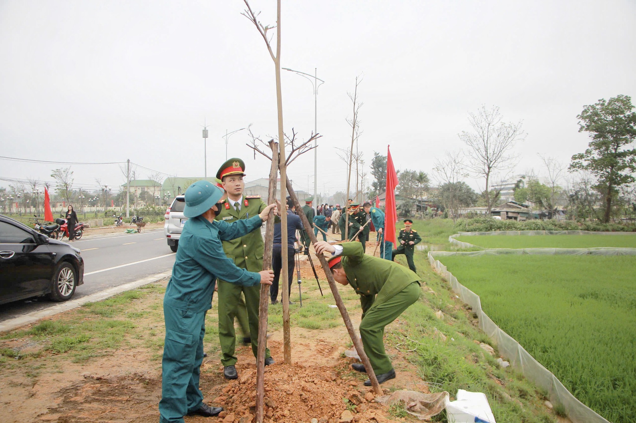 Đông đảo người dân, cán bộ, lực lượng vũ trang cùng ra quân trồng cây xanh