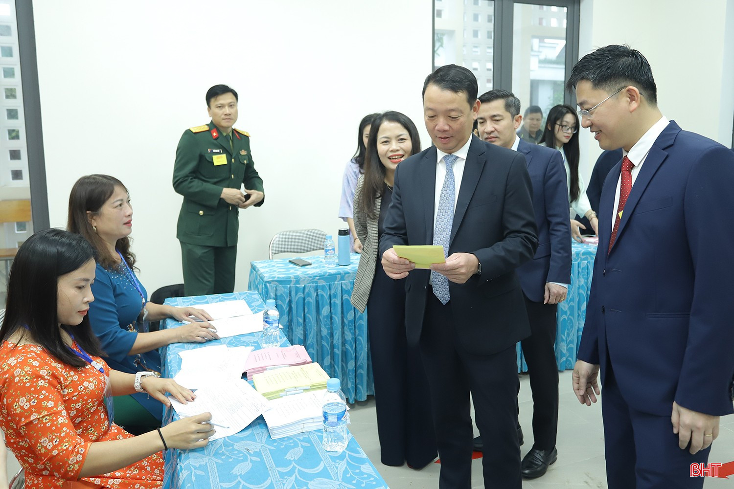 Lúc 6h40’ ngày 15/3, đồng chí Phan Thiên Định – Phó Bí thư Tỉnh ủy, Chủ tịch UBND tỉnh, Phó Trưởng ban Chỉ đạo, Phó Chủ tịch Ủy ban bầu cử tỉnh dự lễ khai mạc tại khu vực bỏ phiếu số 19 ở nhà văn hóa TDP 6 - Tân Giang, phường Thành Sen và thực hiện quyền, nghĩa vụ công dân cùng với 934 cử tri.