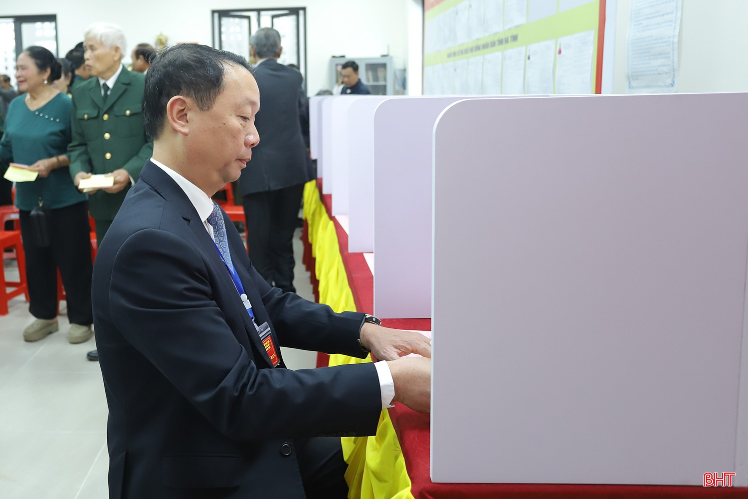 Đồng chí Phan Thiên Định – Phó Bí thư Tỉnh ủy, Chủ tịch UBND tỉnh, Phó Trưởng ban Chỉ đạo, Phó Chủ tịch Ủy ban bầu cử tỉnh cùng các cử tri thực hiện quyền và nghĩa vụ công dân của mình.