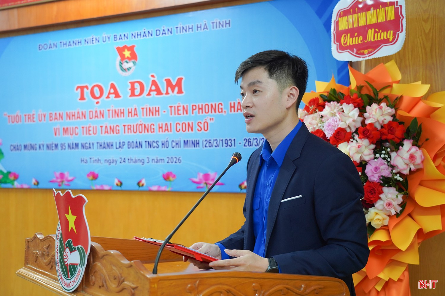 Chiều 24/3, Đoàn Thanh niên UBND tỉnh tổ chức tọa đàm với chủ đề "Tuổi trẻ UBND tỉnh Hà Tĩnh - Tiên phong, hành động vì mục tiêu tăng trưởng hai con số", hướng tới kỷ niệm 95 năm ngày thành lập Đoàn TNCS Hồ Chí Minh (26/3/1931 - 26/3/2026).