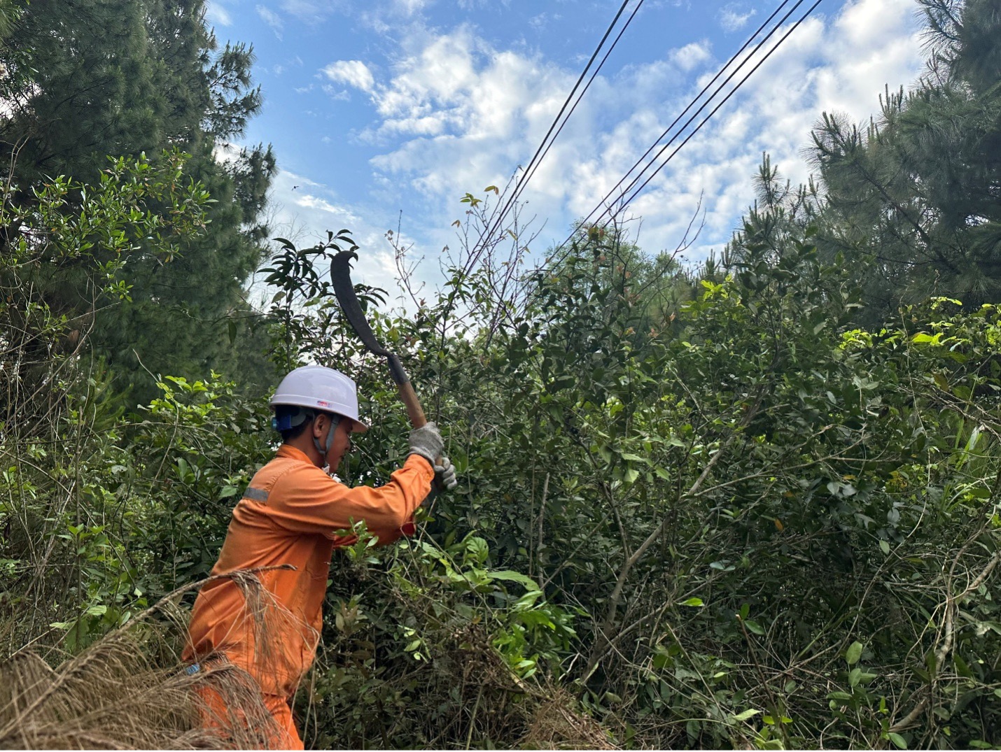 Đội QLĐLKV Can Lộc tổ chức phát quang hành lang tuyến đường dây cấp điện cho khu vực chùa Hương Tích.