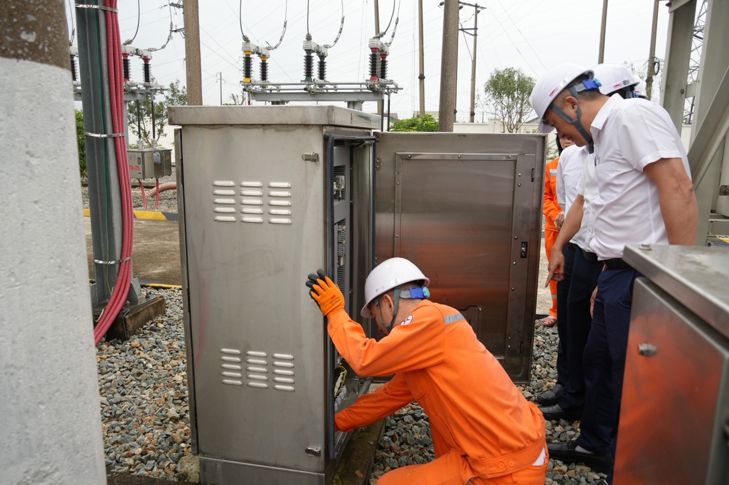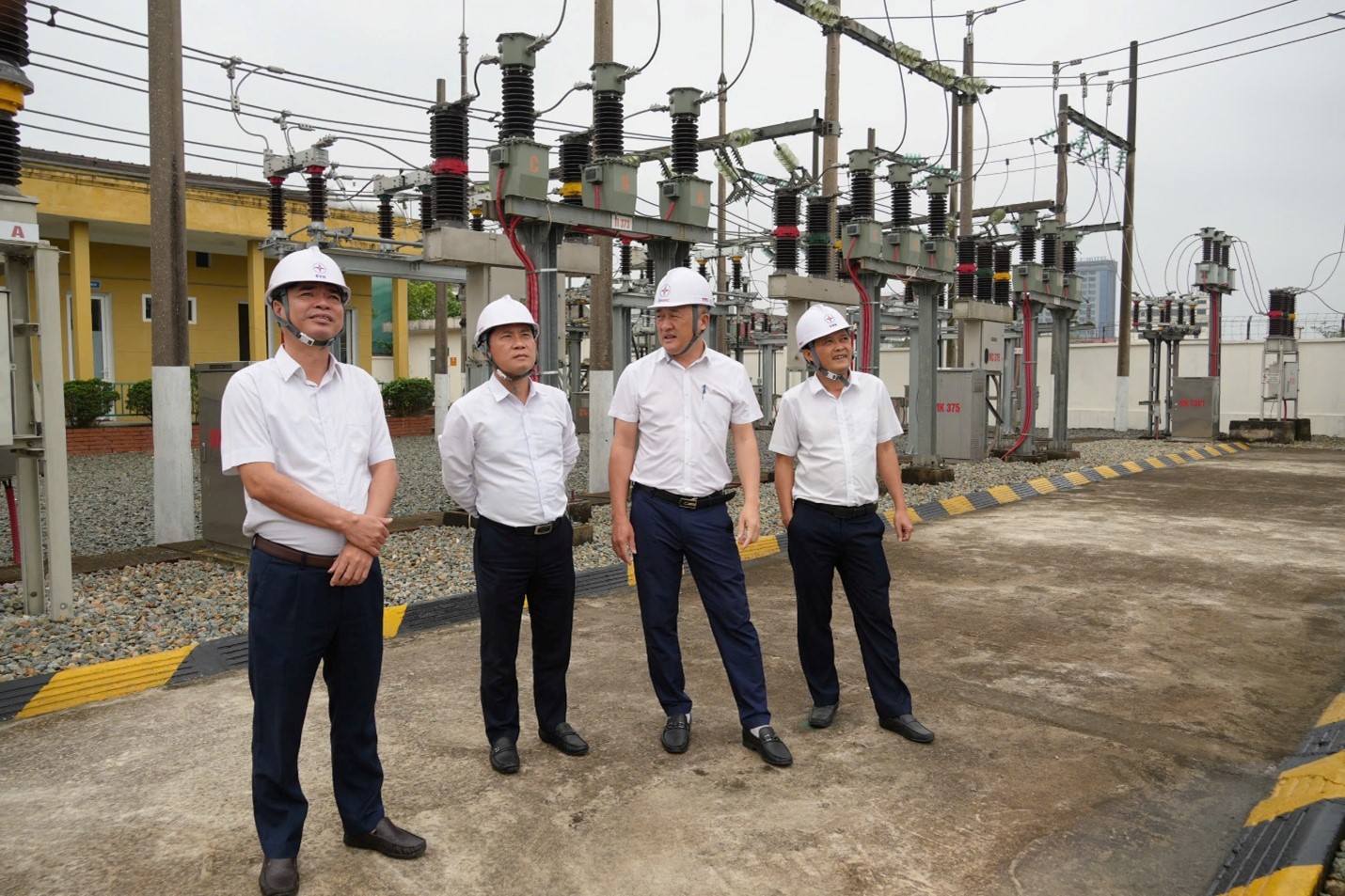 Lãnh đạo CTĐL Hà Tĩnh cùng các phòng chuyên môn kiểm tra công tác bảo đảm cấp điện tại trạm biến áp 110kV Thạch Linh.
