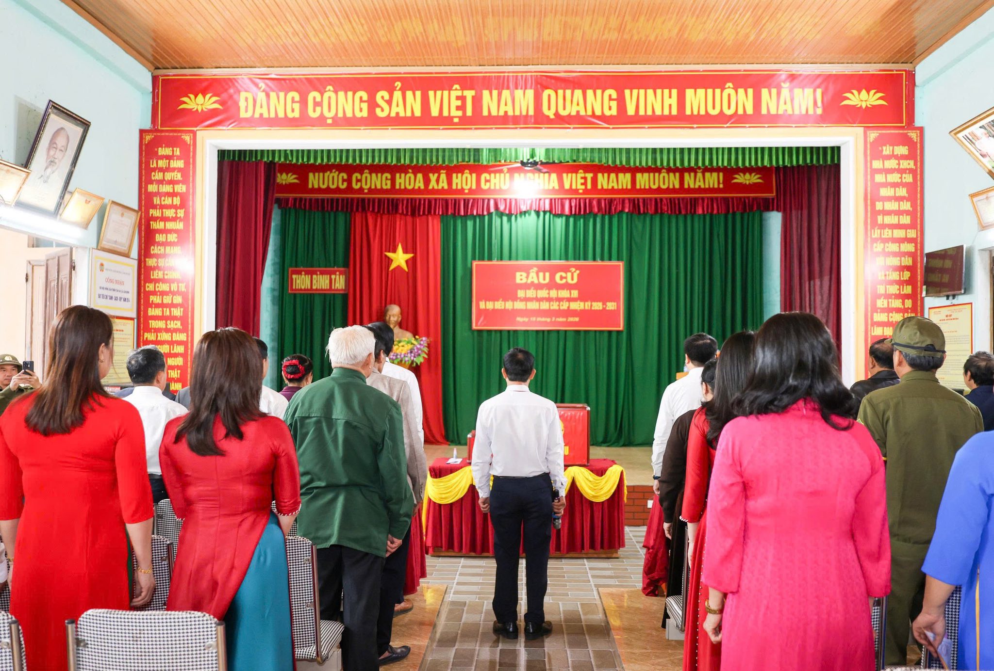 Sau nghi thức chào cờ và tuyên bố khai mạc, Tổ bầu cử đã phổ biến nội quy, quy định và hướng dẫn cử tri thực hiện việc bỏ phiếu theo đúng quy định của pháp luật. Trong không khí trang nghiêm, dân chủ, những cử tri đầu tiên đã tiến hành bỏ những lá phiếu đầu tiên vào thùng phiếu, thể hiện niềm tin và kỳ vọng vào các đại biểu được lựa chọn.