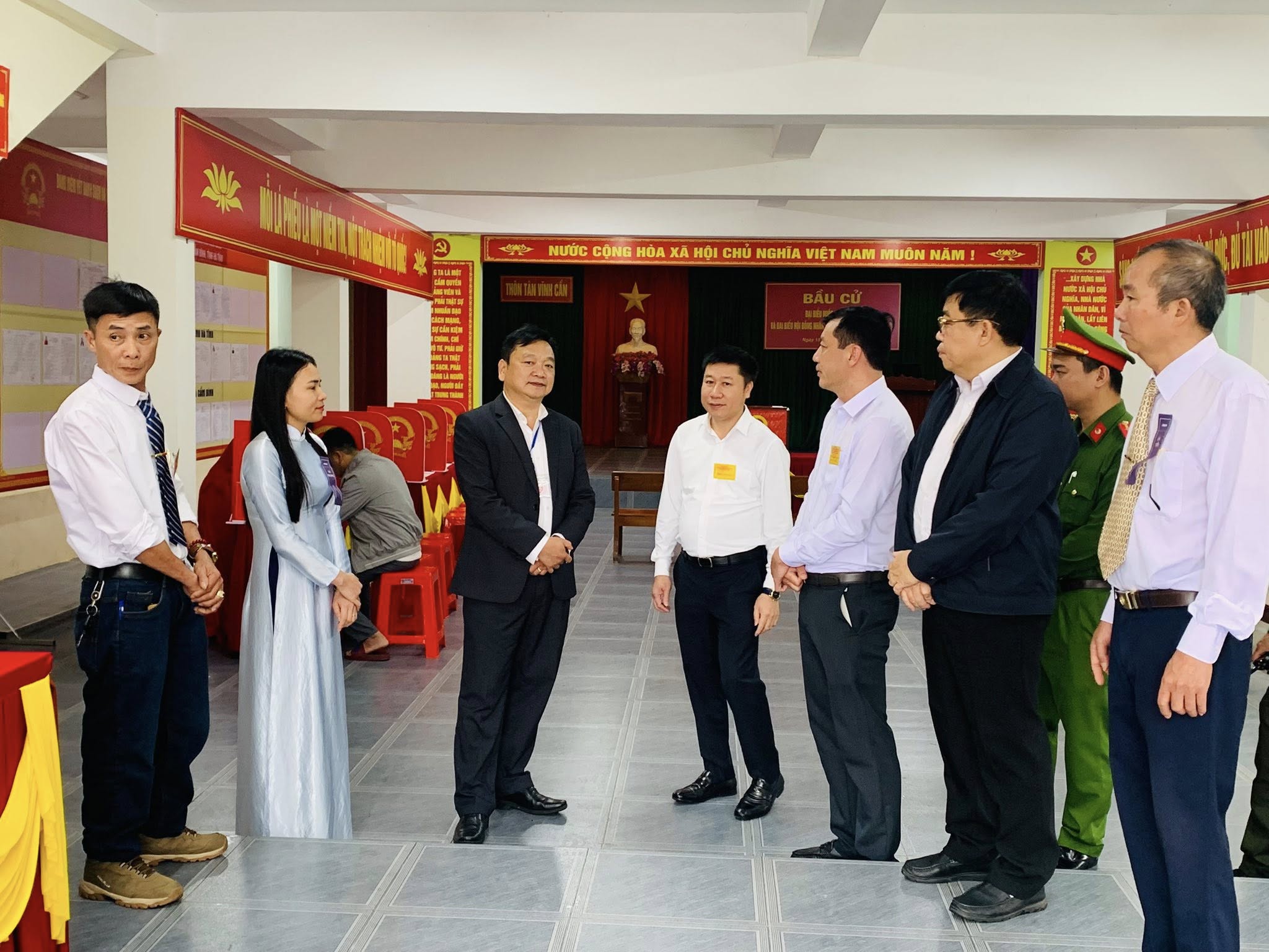 Cũng trong sáng nay đồng chí Hồ Huy Thành - Phó chủ tịch UBND tỉnh Hà Tĩnh cùng các đồng chí trong đoàn công tác của tỉnh cũng về kiểm tra chỉ đạo công tác bầu cử tại khu vực bỏ phiếu số 9 - Tân Vĩnh Cần, xã Cẩm Bình.
