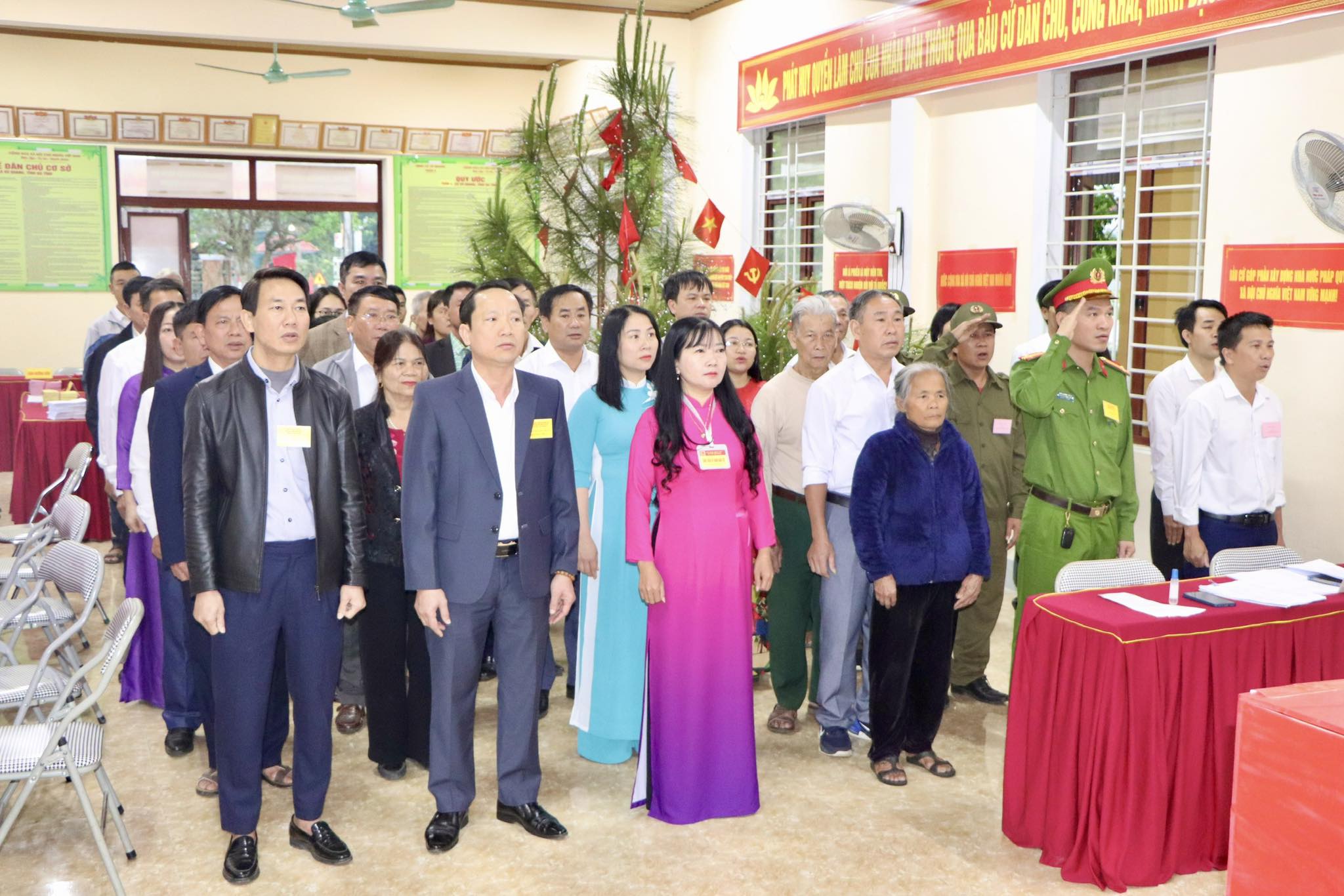 Các khu vực bỏ phiếu trên địa bàn xã được trang trí trang trọng với cờ Tổ quốc, băng rôn, khẩu hiệu chào mừng ngày bầu cử. Công tác chuẩn bị được triển khai chu đáo, từ việc niêm yết danh sách cử tri, tiểu sử tóm tắt của các ứng cử viên đến bố trí phòng bỏ phiếu, hòm phiếu và các điều kiện cơ sở vật chất phục vụ cử tri. Tất cả đều được thực hiện đúng quy định, tạo điều kiện thuận lợi để cử tri tham gia bỏ phiếu nhanh chóng, an toàn.