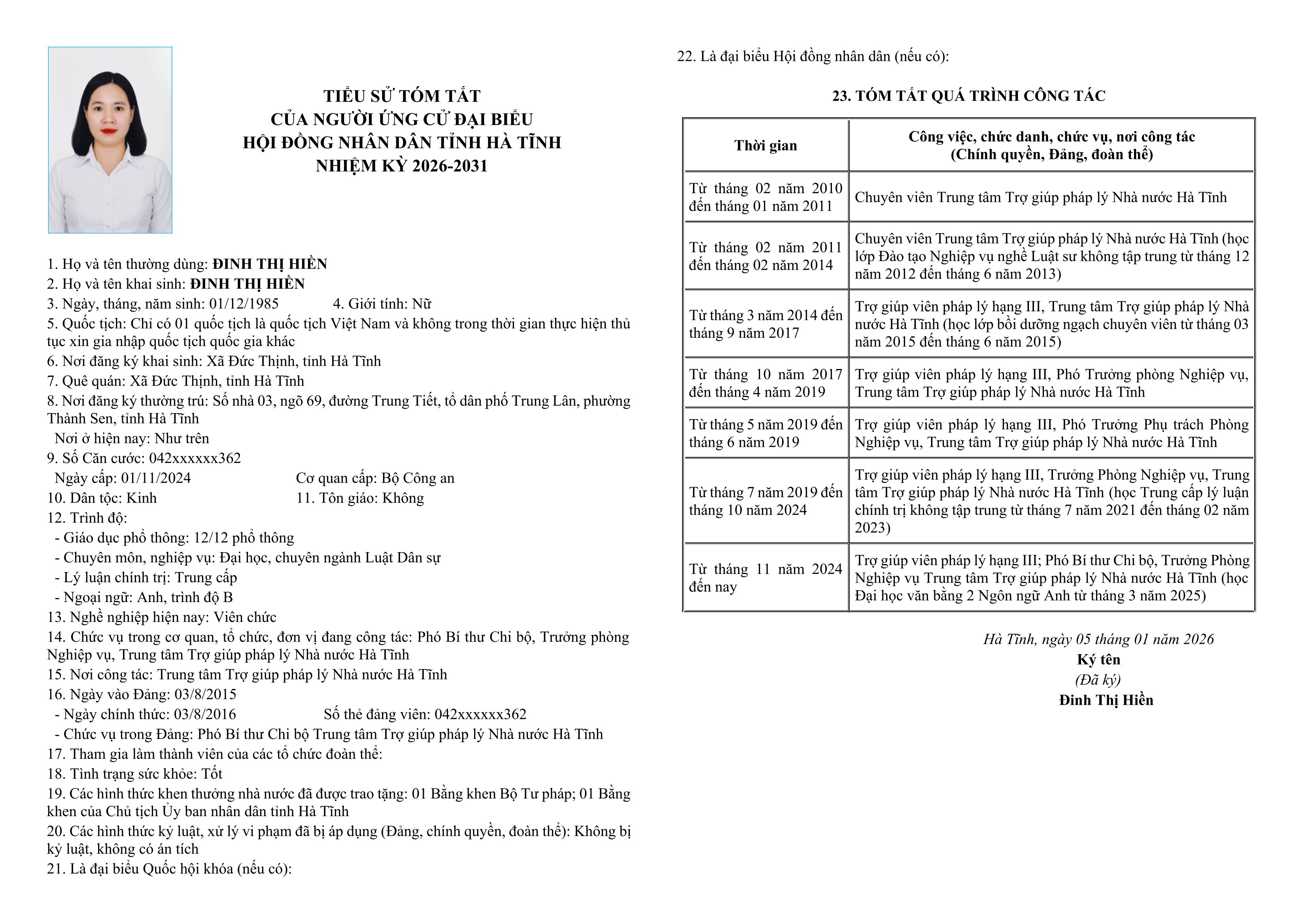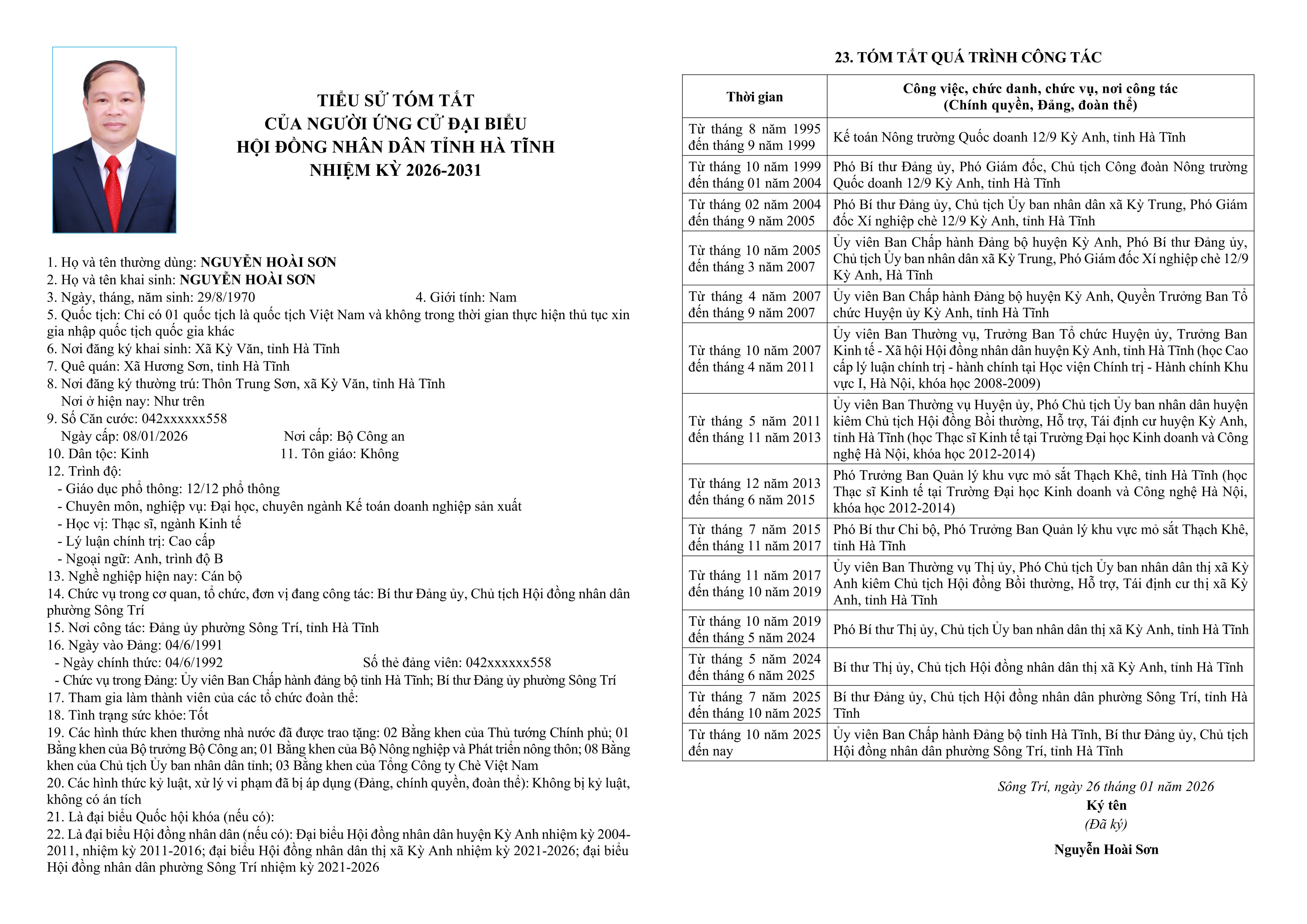 Danh sách chính thức người ứng cử đại biểu HĐND tỉnh khoá XIX tại Hà Tĩnh (Đơn vị bầu cử số 1)