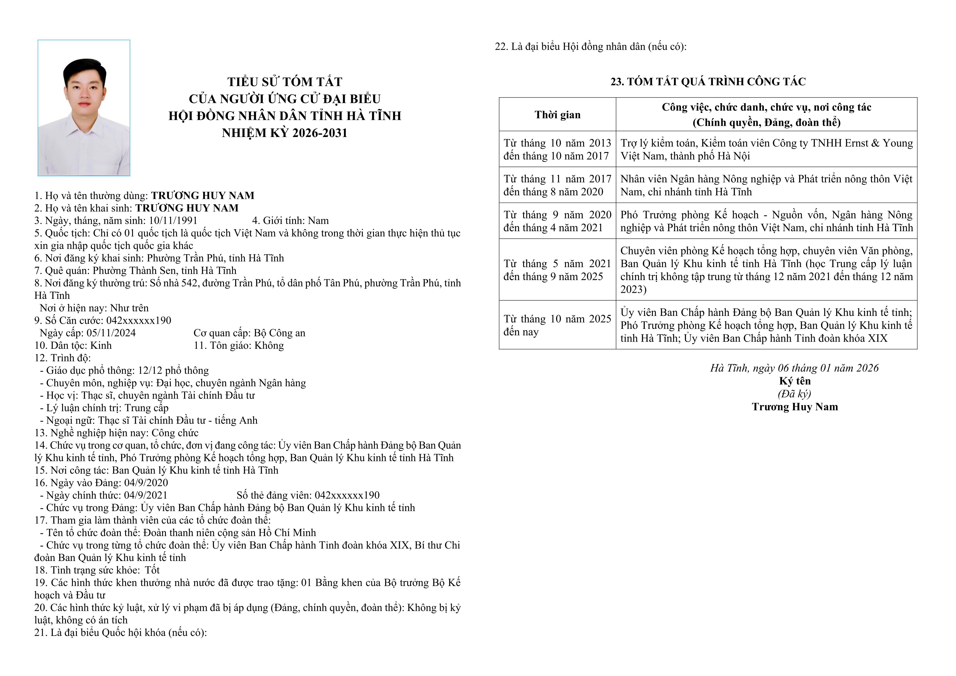6. Ông Trương Huy Nam - Ủy viên Ban Chấp hành Đảng bộ Ban Quản lý Khu kinh tế tỉnh; Phó Trưởng phòng Kế hoạch tổng hợp, Ban Quản lý Khu kinh tế tỉnh Hà Tĩnh.