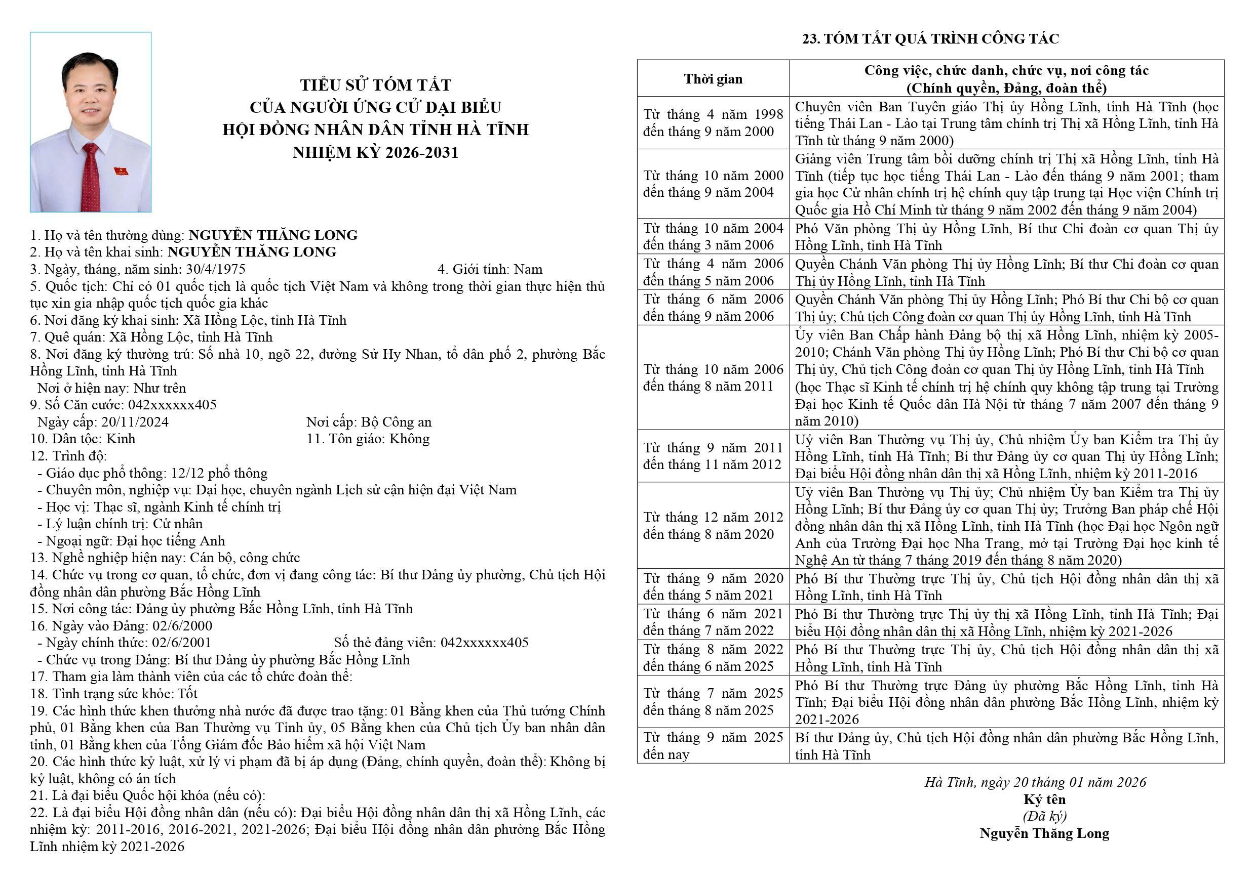6. Nguyễn Thăng Long - Bí thư Đảng ủy, Chủ tịch Hội đồng nhân dân phường Bắc Hồng Lĩnh, tỉnh Hà Tĩnh