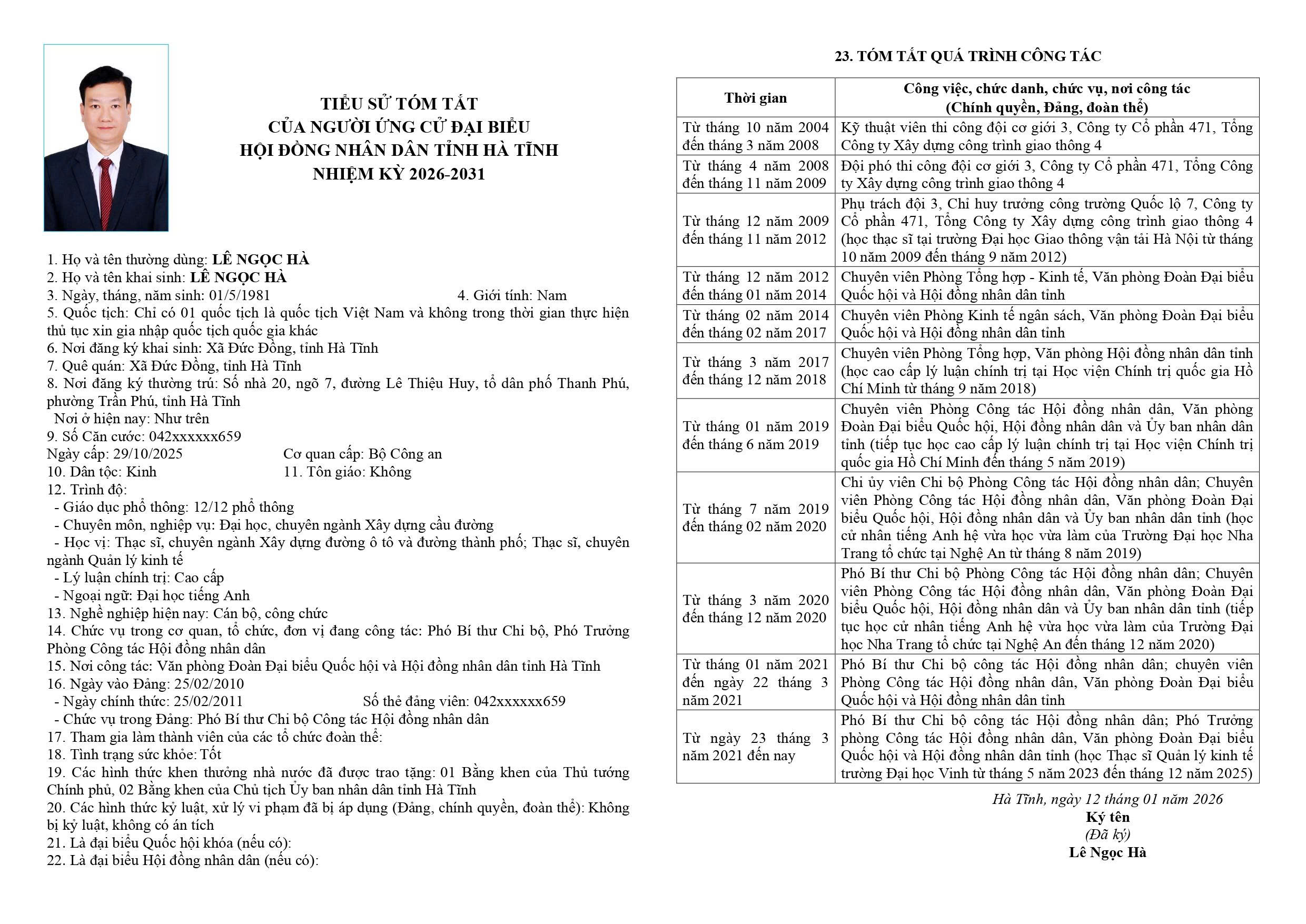 1. Lê Ngọc Hà - Phó Bí thư Chi bộ công tác Hội đồng nhân dân; Phó Trưởng phòng Công tác Hội đồng nhân dân, Văn phòng Đoàn Đại biểu Quốc hội và Hội đồng nhân dân tỉnh (học Thạc sĩ Quản lý kinh tế trường Đại học Vinh từ tháng 5 năm 2023 đến tháng 12 năm 2025)