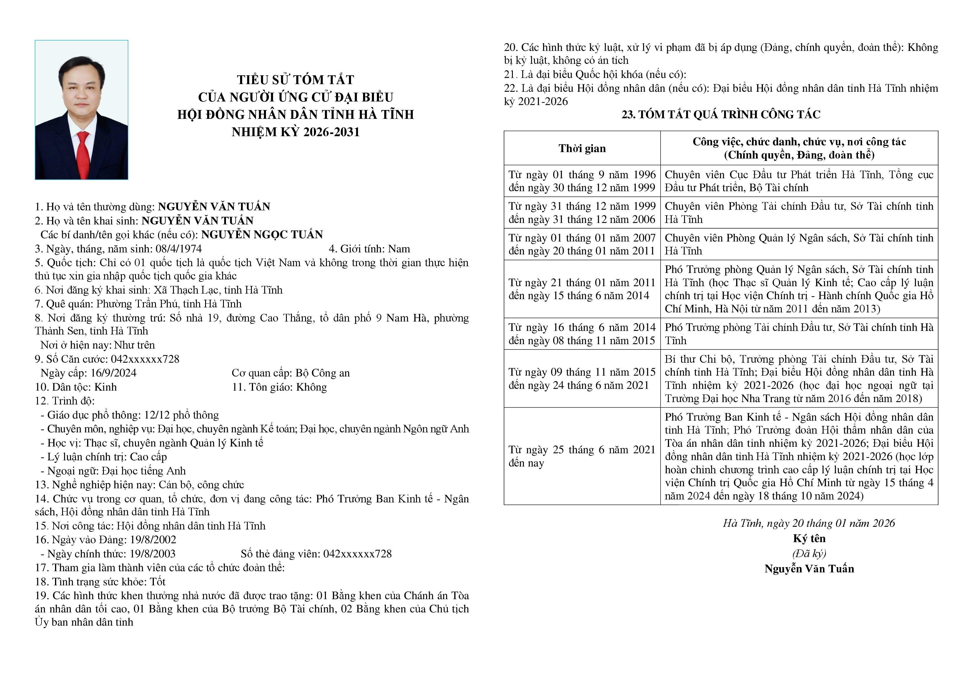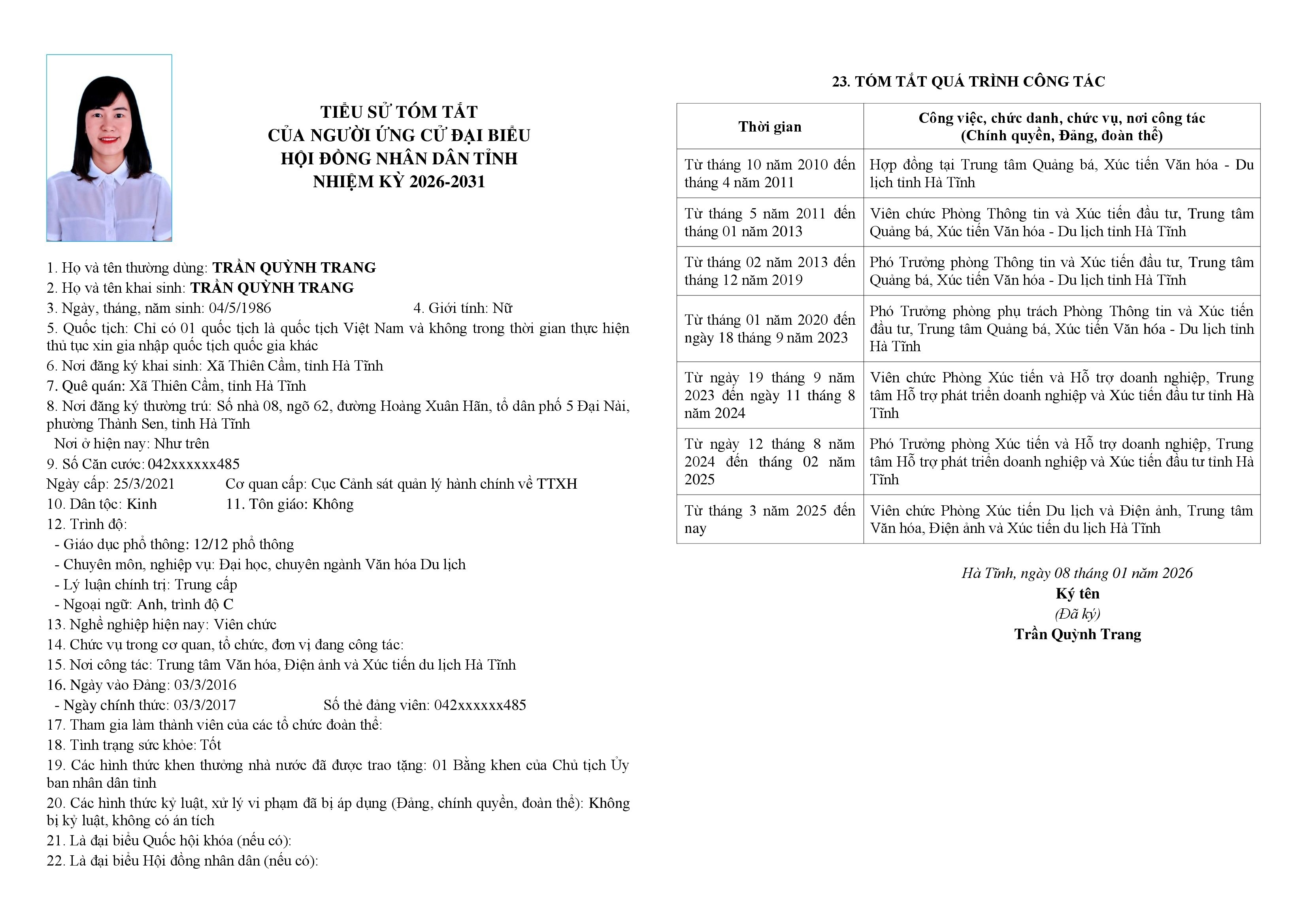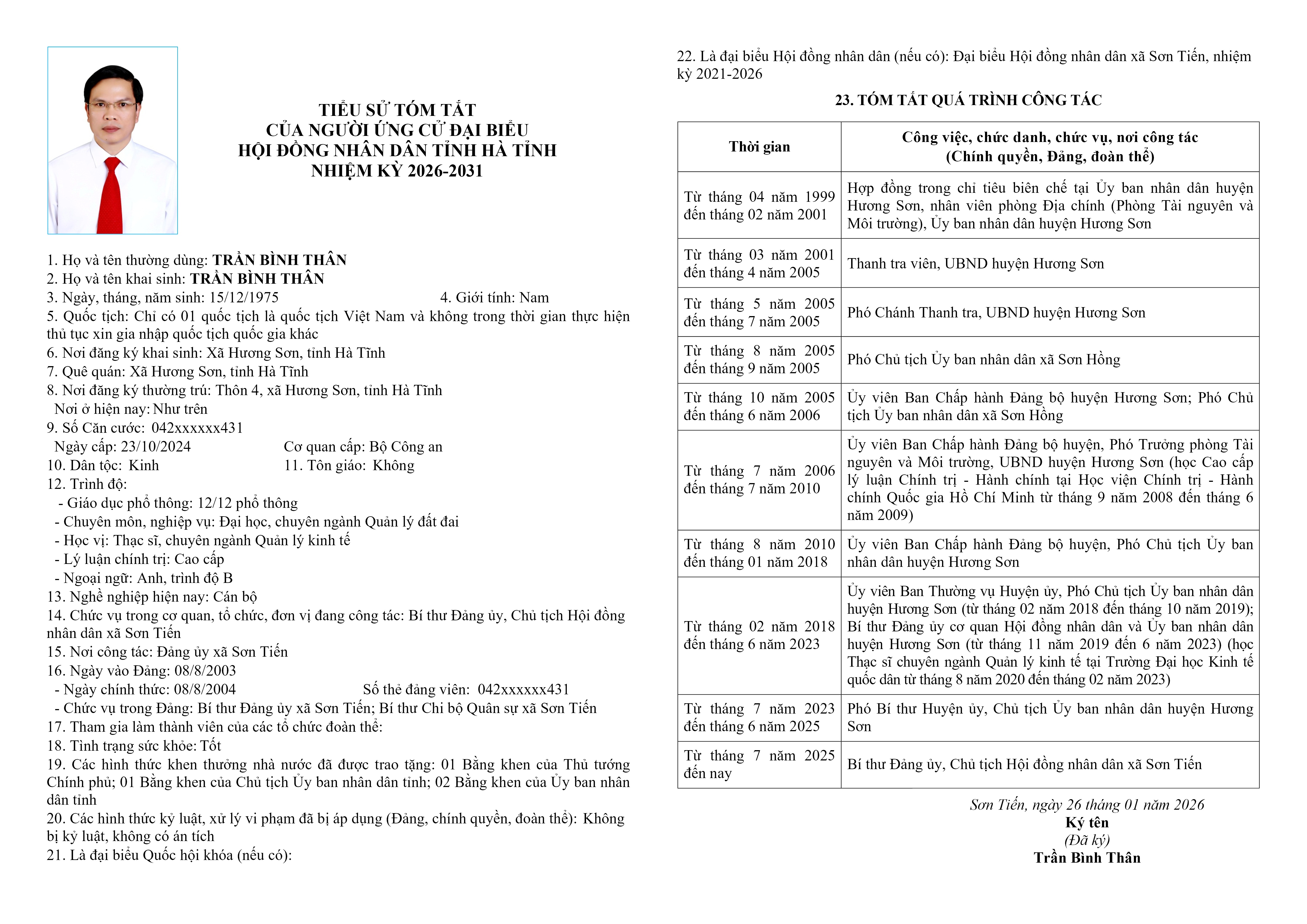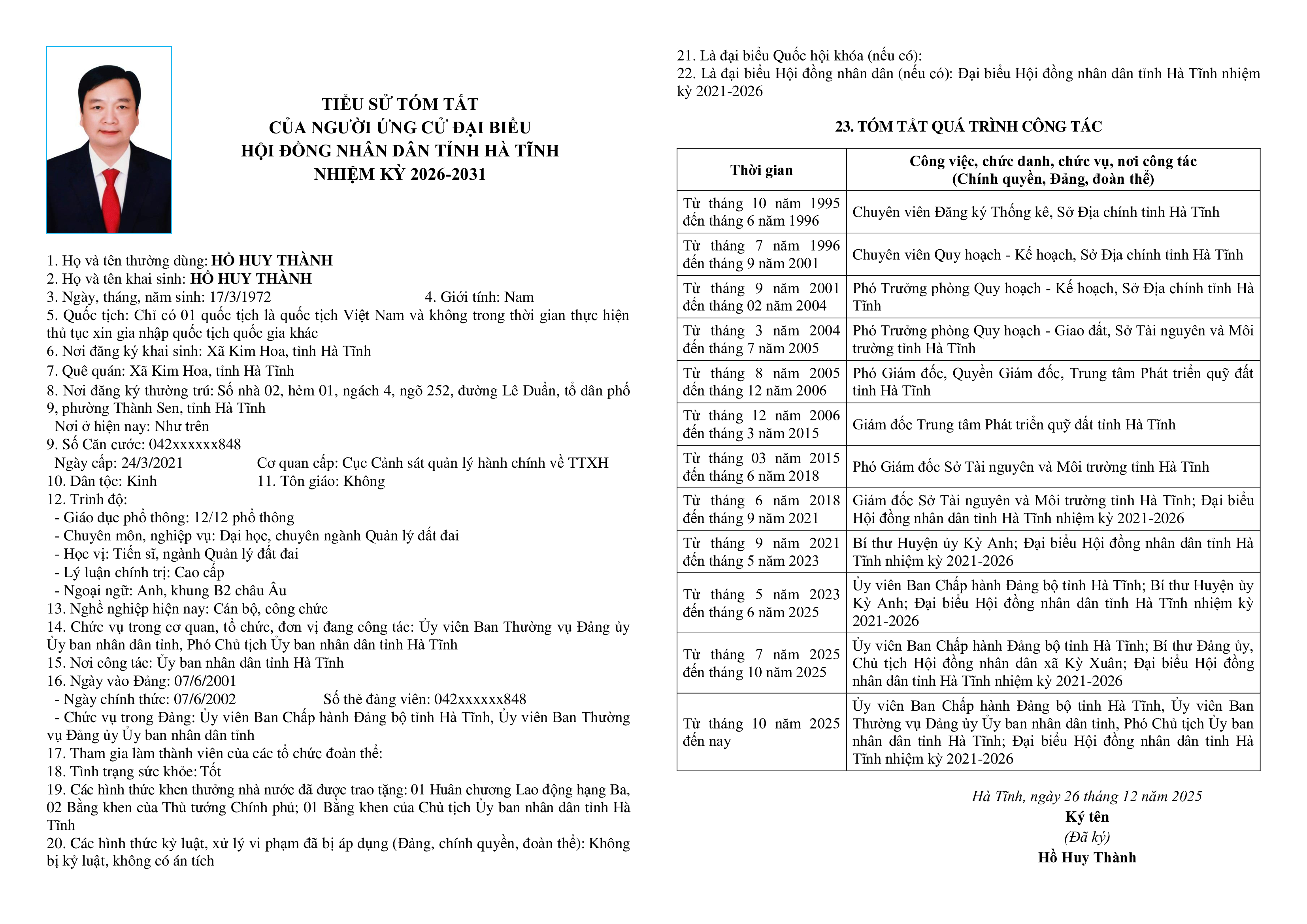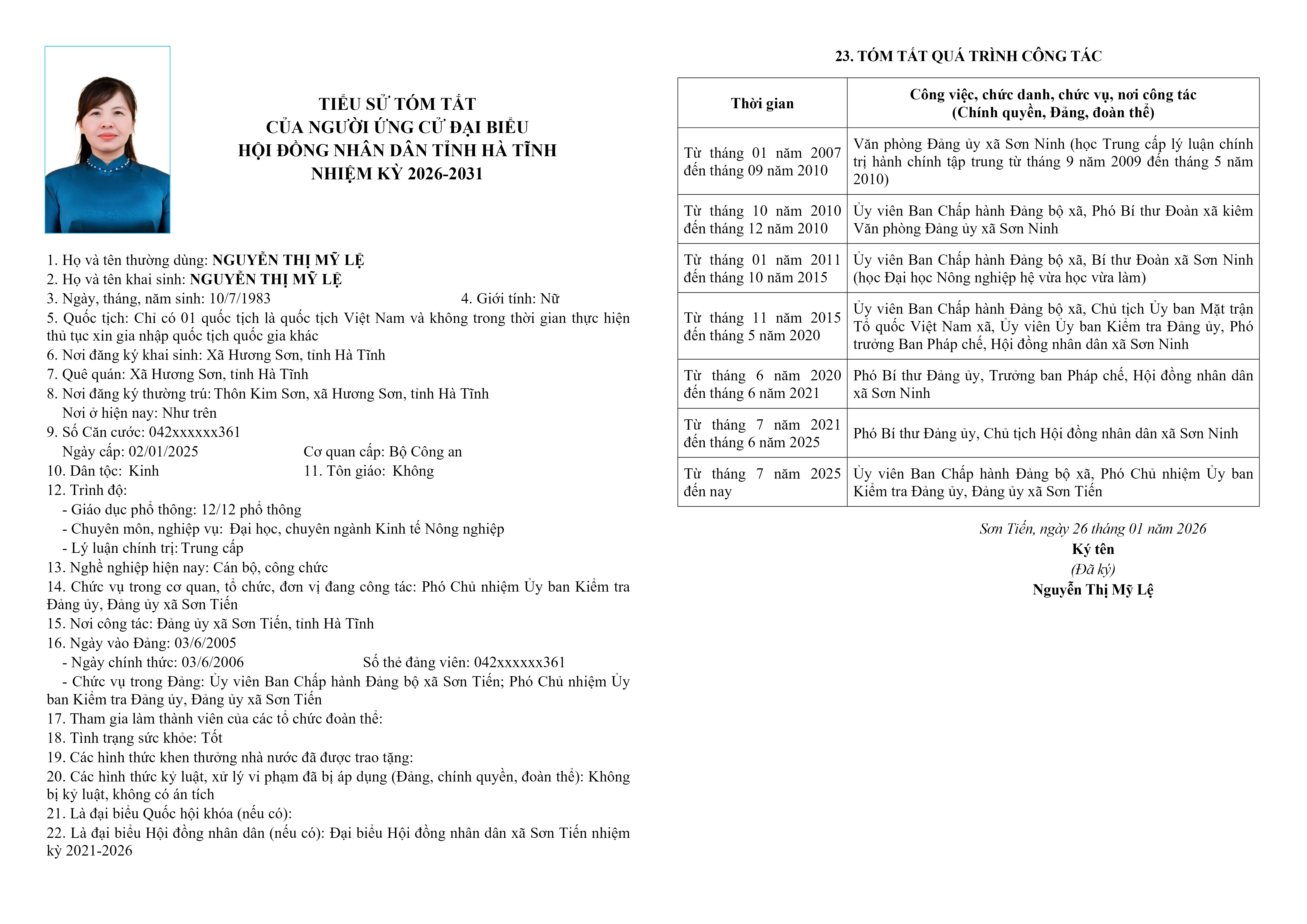 Danh sách chính thức người ứng cử đại biểu Hội đồng nhân dân tỉnh Hà Tĩnh khóa XIX, nhiệm kỳ 2026 – 2031, đơn vị bầu cử số 11.
