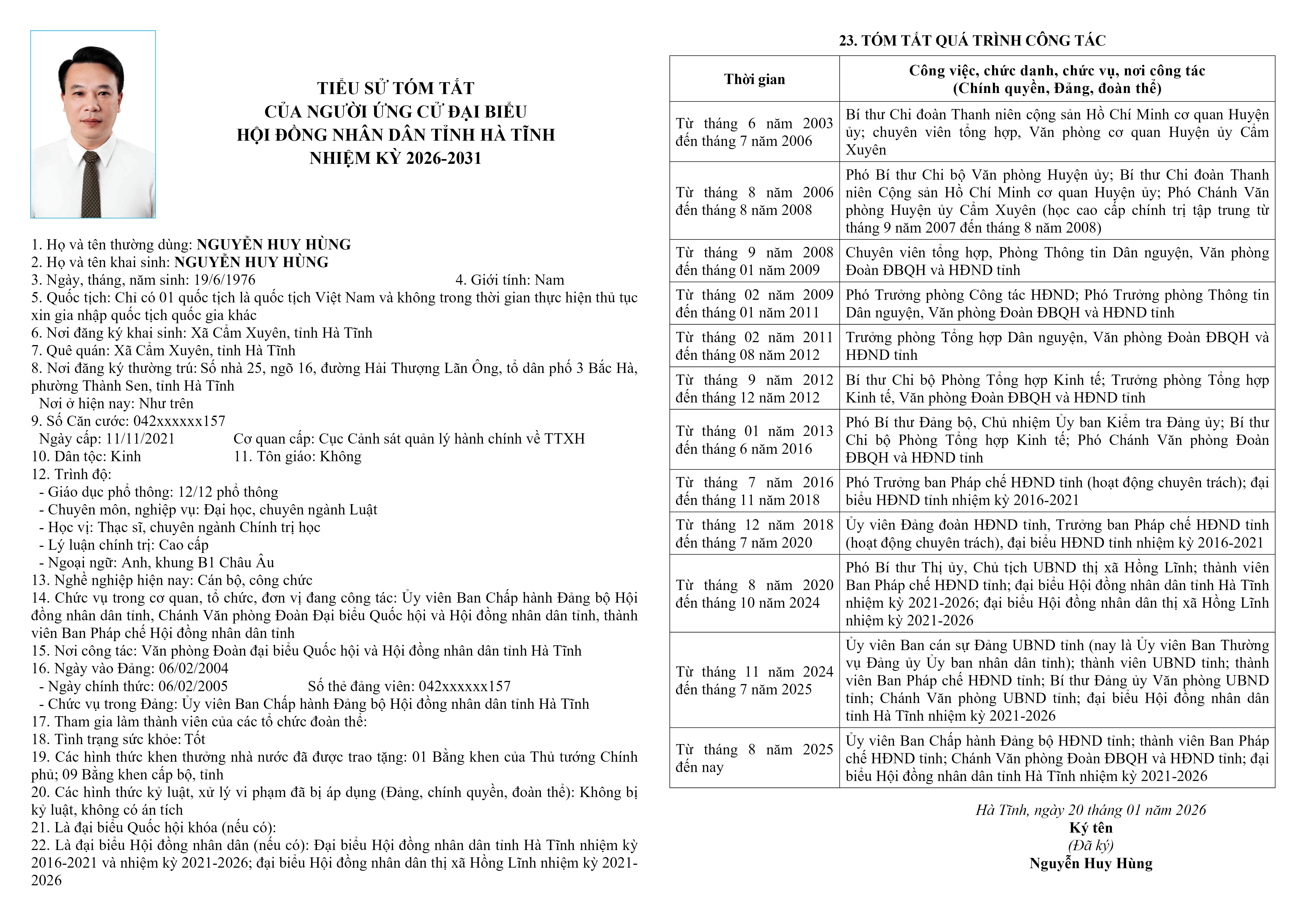 6. Ông Nguyễn Huy Hùng – Ủy viên Ban Chấp hành Đảng bộ Hội đồng nhân dân tỉnh; Chánh Văn phòng Đoàn Đại biểu Quốc hội và Hội đồng nhân dân tỉnh; Thành viên Ban Pháp chế Hội đồng nhân dân tỉnh Hà Tĩnh.