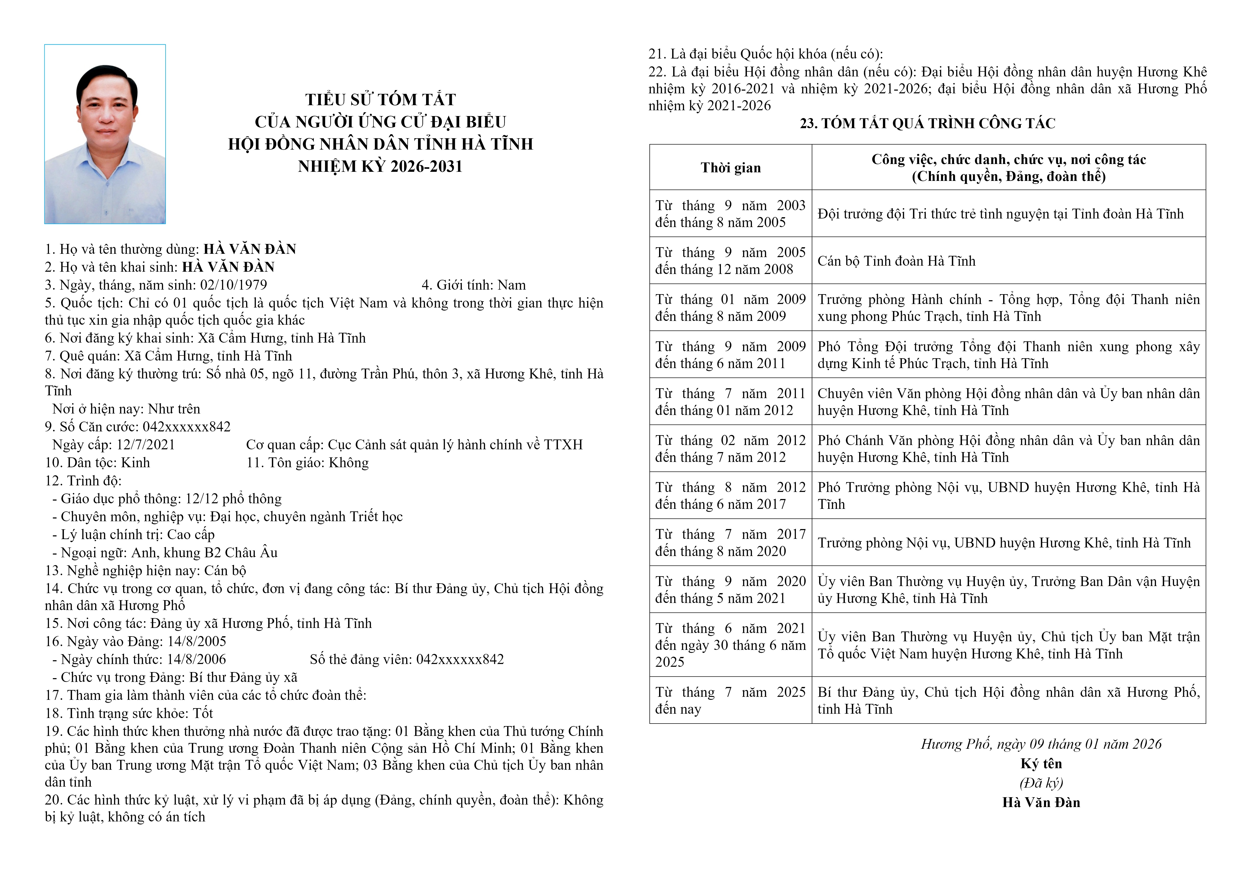 1.Ông Hà Văn Đàn – Bí thư Đảng ủy, Chủ tịch Hội đồng nhân dân xã Hương Phố, tỉnh Hà Tĩnh.