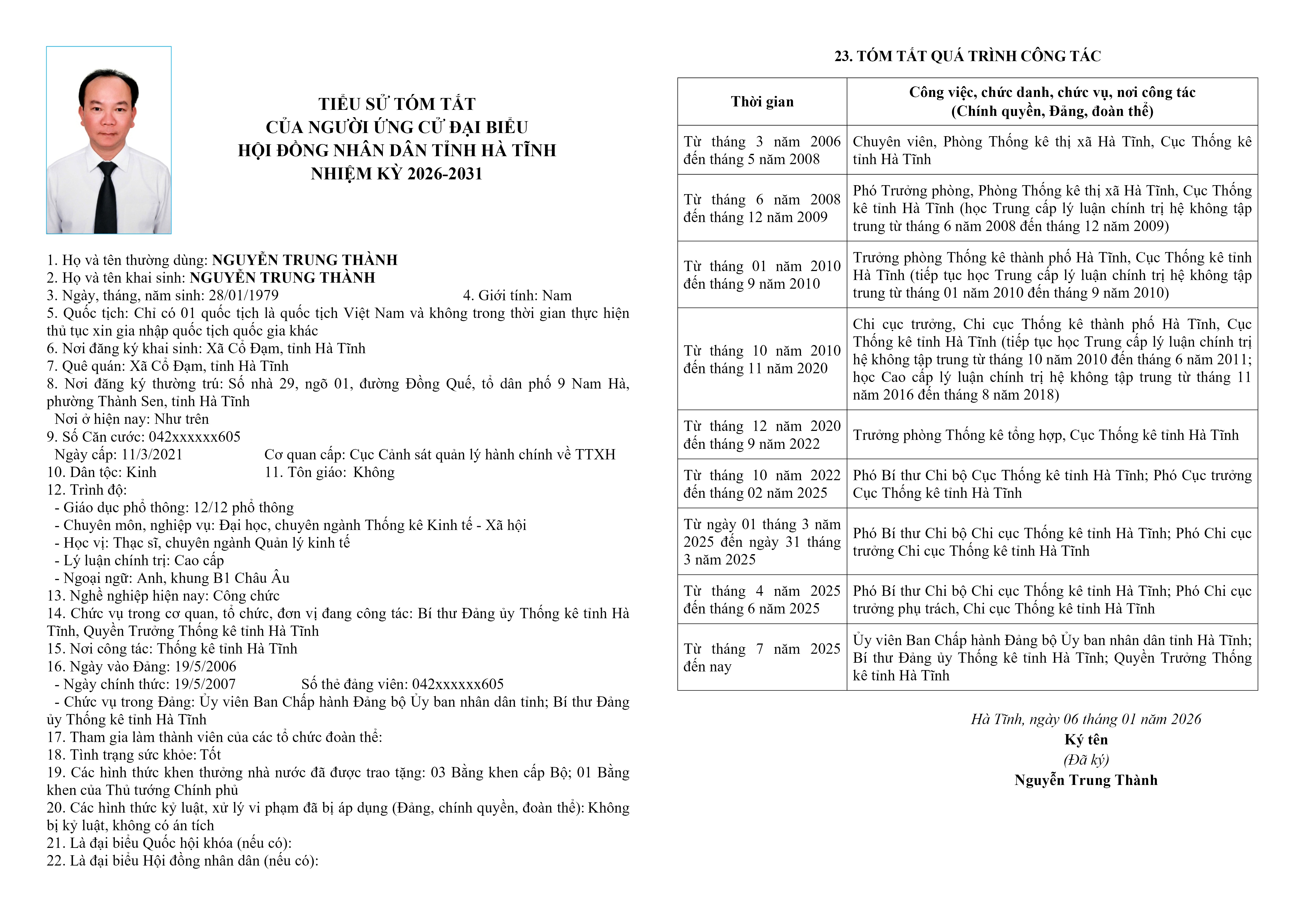 8. Ông Nguyễn Trung Thành – Ủy viên Ban Chấp hành Đảng bộ Ủy ban nhân dân tỉnh; Bí thư Đảng ủy Thống kê tỉnh Hà Tĩnh; Quyền Trưởng Thống kê tỉnh Hà Tĩnh.