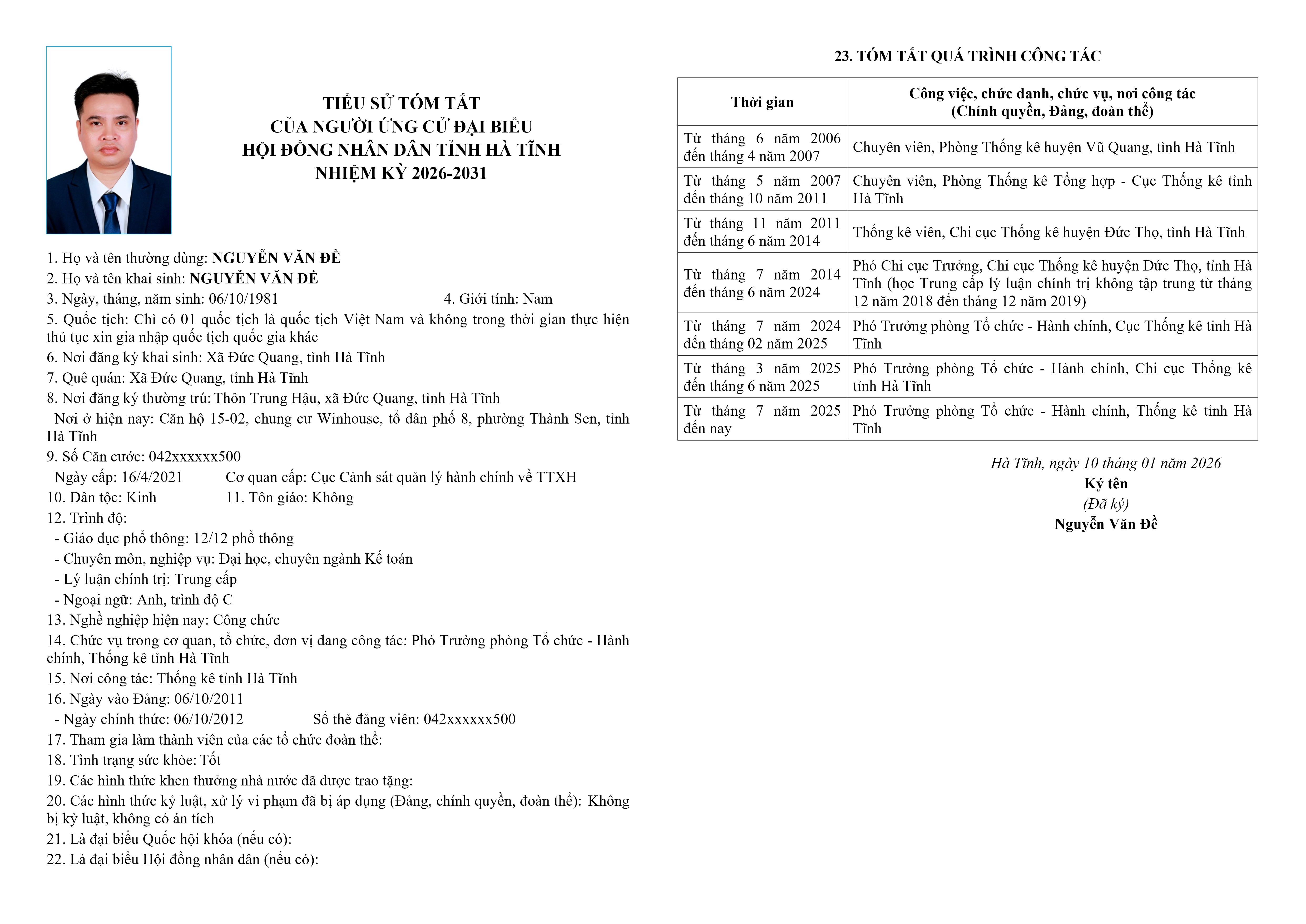2. Ông Nguyễn Văn Đề – Phó Trưởng phòng Tổ chức – Hành chính, Thống kê tỉnh Hà Tĩnh.