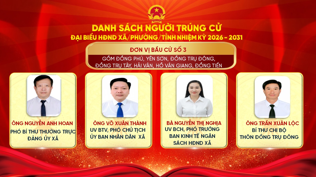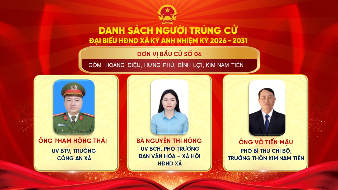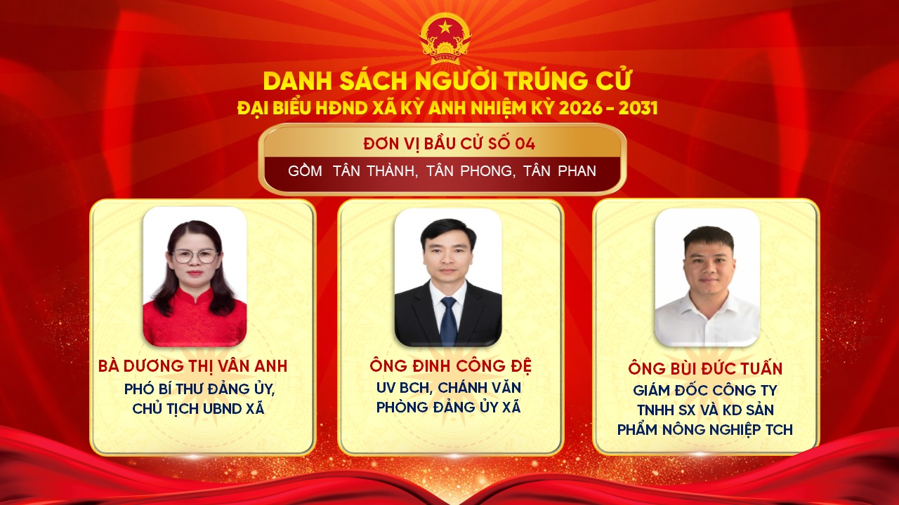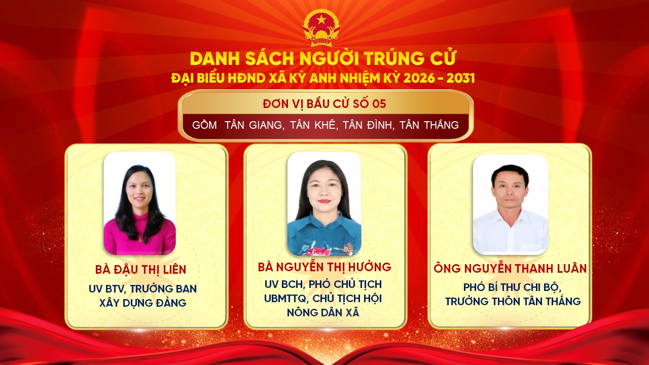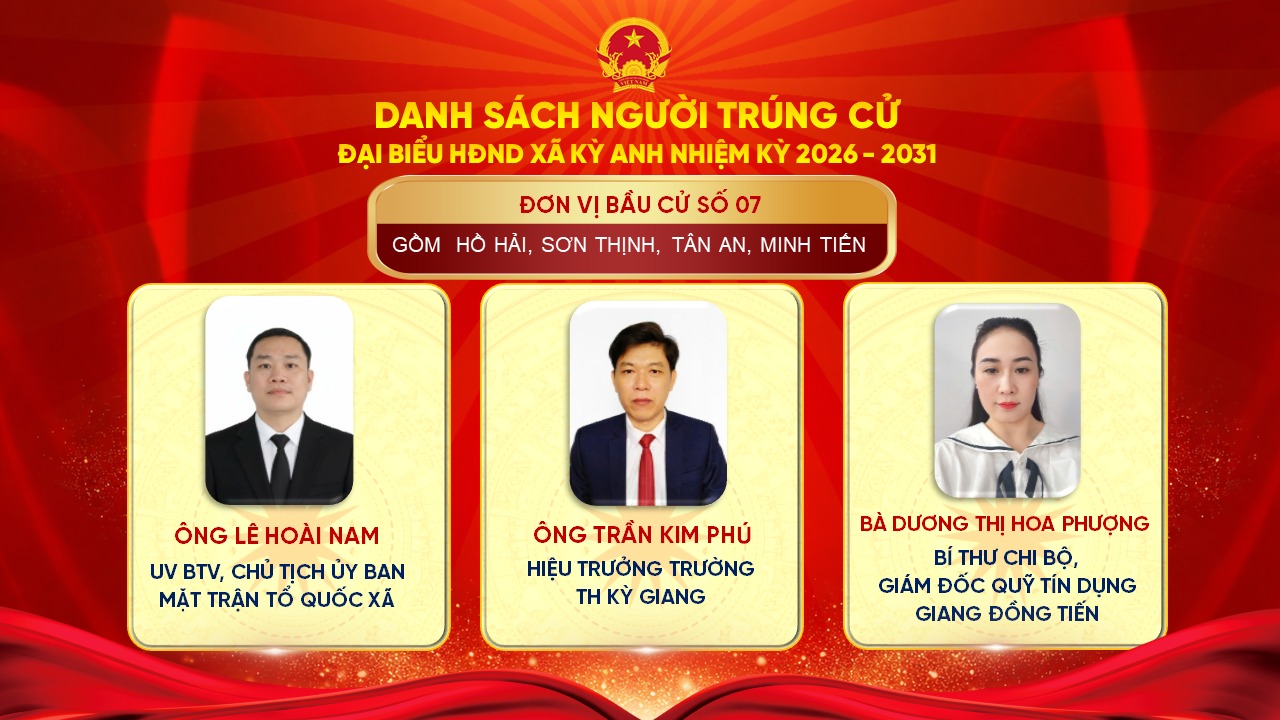 Uỷ ban Bầu cử xã Kỳ Anh trân trọng giới thiệu danh sách những người trúng cử đại biểu HĐND xã Kỳ Anh khóa II, nhiệm kỳ 2026 – 2031