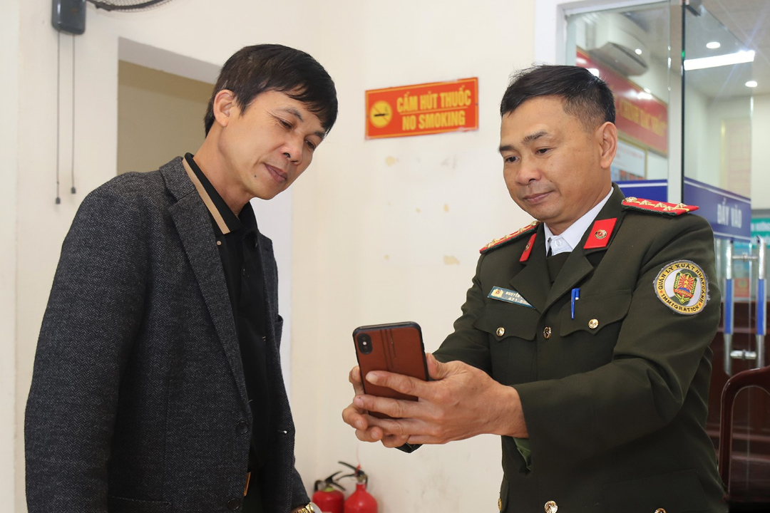 Có mặt tại Phòng Quản lý xuất nhập cảnh, anh Trần Văn Nhạc (trú xã Vũ Quang) đến làm thủ tục cấp hộ chiếu để đi Thái Lan. "Tôi từng có hộ chiếu nhưng đã thất lạc. Dưới sự hướng dẫn của cán bộ Phòng Quản lý xuất nhập cảnh, tôi thực hiện truy cập Cổng dịch vụ công để làm hộ chiếu trực tuyến. Nhìn chung, thủ tục online được hướng dẫn rõ ràng, dễ hiểu, tạo thuận lợi cho công dân trong quá trình thực hiện. Do đặc thù công việc ở nước ngoài nên dù đã nắm được quy trình làm hộ chiếu trực tuyến, tôi vẫn tới Phòng Quản lý xuất nhập cảnh để được cán bộ công an trực tiếp hướng dẫn thêm" - anh Nhạc chia sẻ.