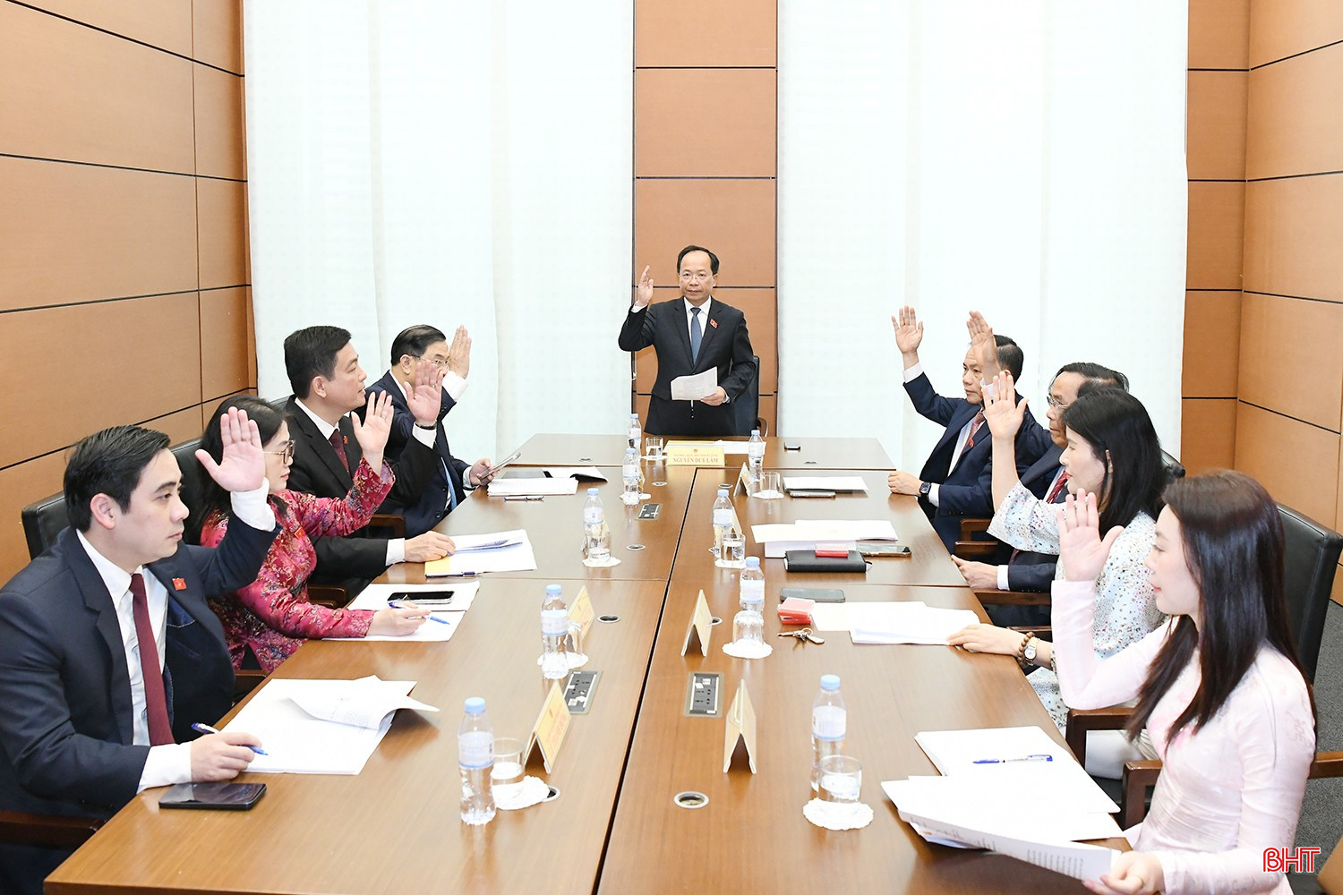 Tham dự cuộc họp có đồng chí Phạm Gia Túc - Ủy viên Bộ Chính trị, Bí thư Trung ương Đảng, Chánh Văn phòng Trung ương Đảng, ĐBQH khóa XVI đoàn Hà Tĩnh; đồng chí Nguyễn Duy Lâm - Ủy viên Ban Chấp hành Trung ương Đảng, Bí thư Tỉnh ủy Hà Tĩnh, Triệu tập viên chủ trì phiên họp, cùng các ĐBQH trong đoàn.