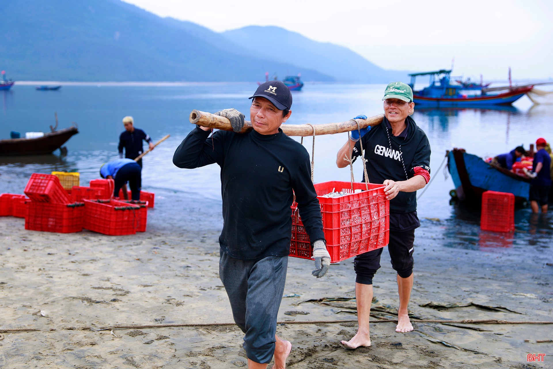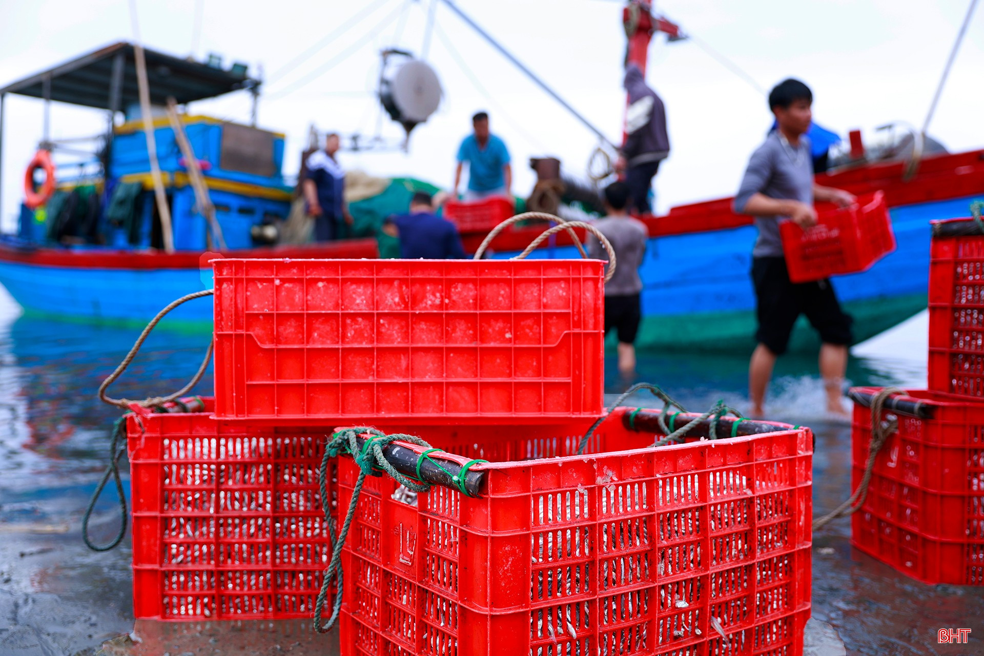 Từ sáng sớm, tại khu vực cảng cá và các điểm thu mua trên địa bàn, không khí mua bán diễn ra khẩn trương.