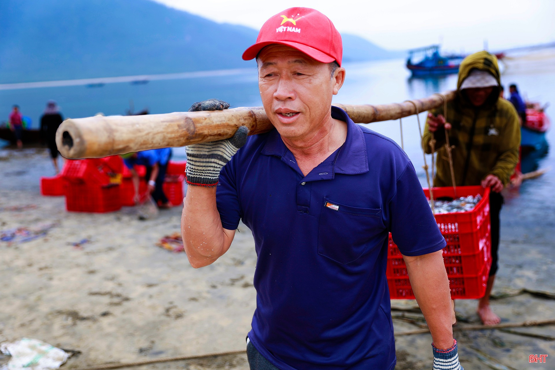 Sau một đêm đánh bắt, chiếc thuyền 200CV của anh Nguyễn Văn Lân (TDP Tam Hải 2, Hải Ninh) đã cập bến với hơn 5 tấn cá cơm. "Mấy ngày nay, bà con trúng đậm cá cơm, tàu ít thì 2-3 tấn, nhiều thì 7-8 tấn. Cá được nhập tại bến cho các thương lái với giá tốt. Trừ chi phí xăng dầu, nhân công, thuyền chúng tôi thu lãi vài chục triệu đồng...” - anh Lân cho biết.