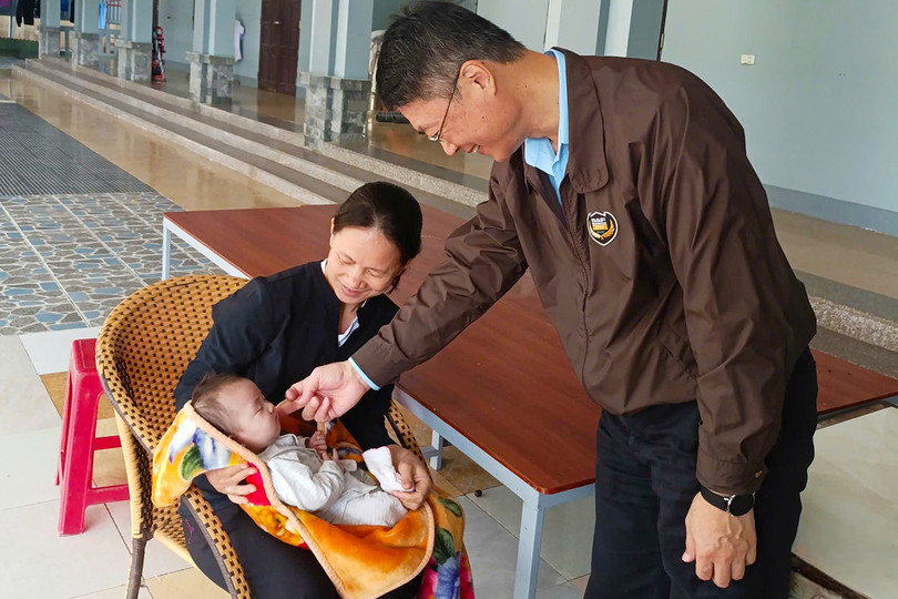 Ông Lô Trung Minh - Giám đốc Ban Quản lý, Công ty Formosa Hà Tĩnh thăm và tặng quà Tết cho các em nhỏ ở Mái ấm Phúc Ân (phường Hoành Sơn).
