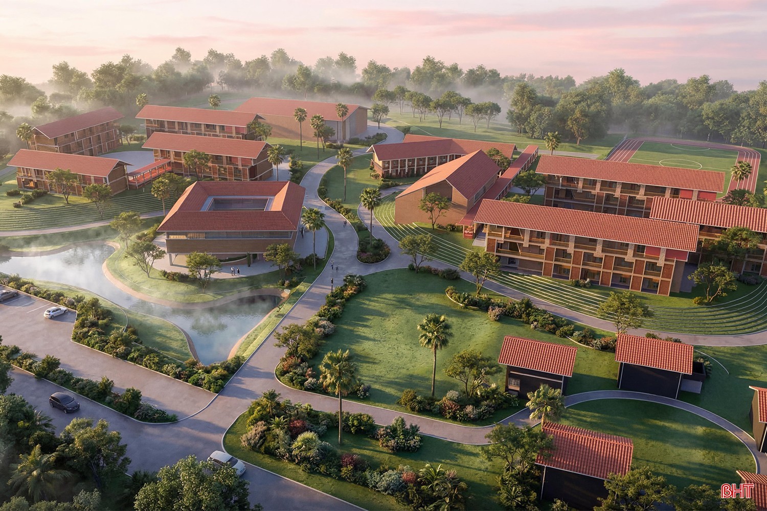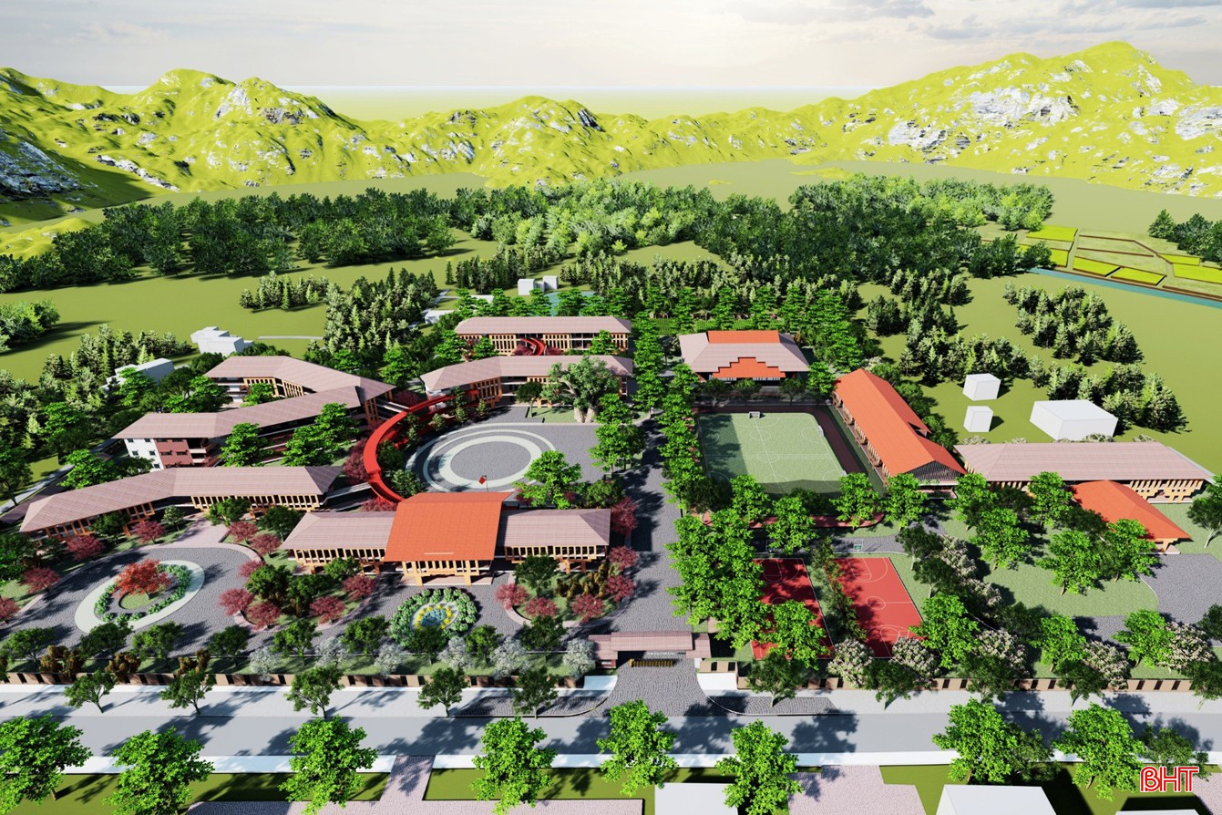 Phối cảnh 3D Trường Phổ thông nội trú liên cấp TH&THCS Hương Xuân.