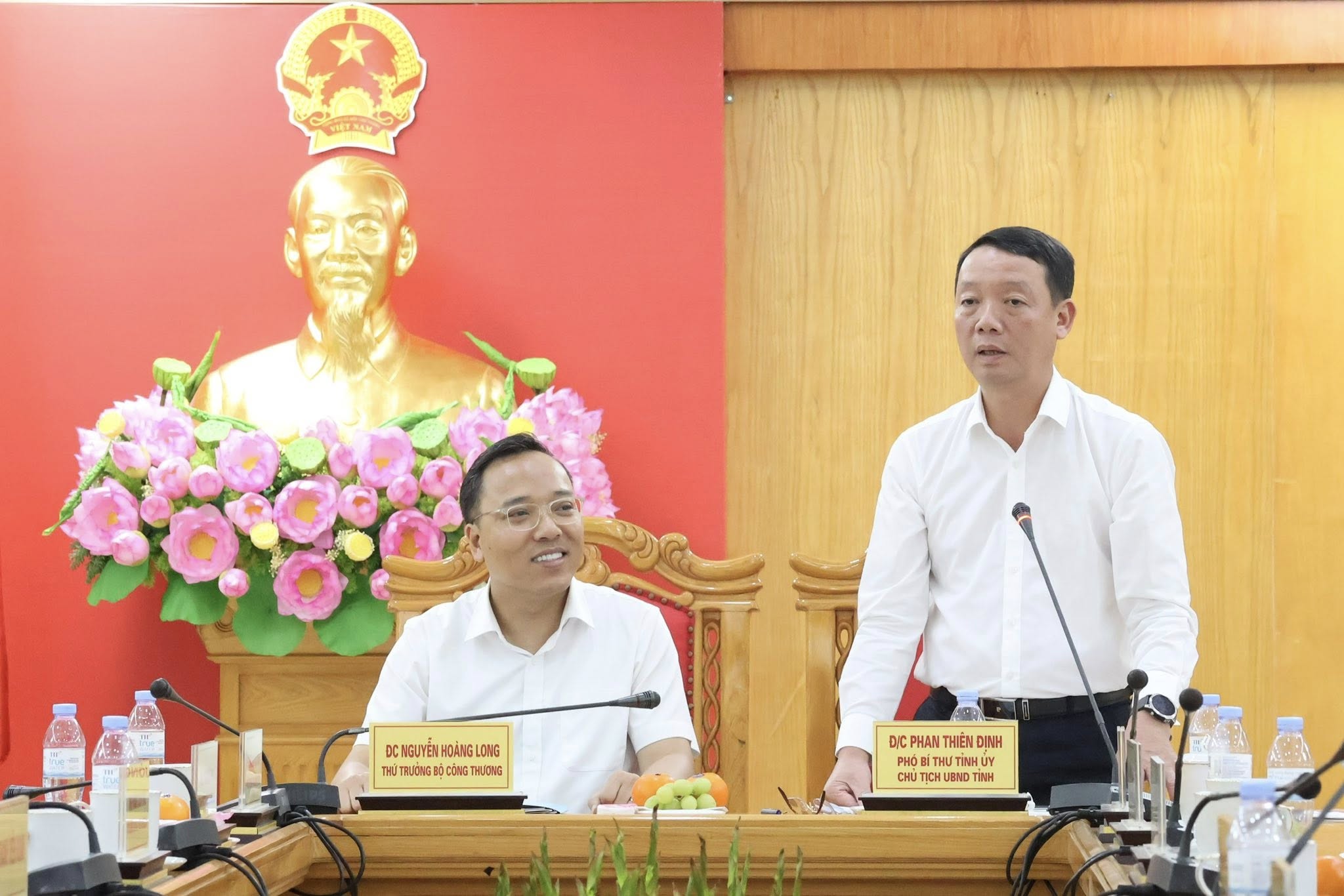 Phát biểu tại buổi làm việc, Chủ tịch UBND tỉnh Phan Thiên Định cảm ơn sự quan tâm, hỗ trợ của Bộ Công Thương và các đơn vị liên quan trong thời gian qua, đồng thời kiến nghị sớm ban hành văn bản hướng dẫn thực hiện Nghị quyết số 253/2025/QH15; xây dựng chính sách hỗ trợ phát triển điện mặt trời mái nhà và hệ thống lưu trữ điện; xem xét điều chỉnh tiến độ vận hành Dự án Nhà máy nhiệt điện khí LNG Vũng Áng III sớm hơn so với quy hoạch.