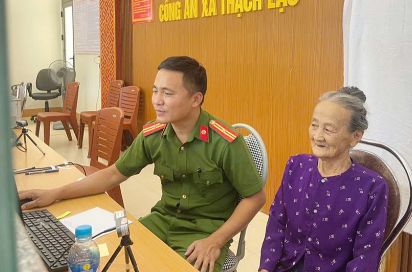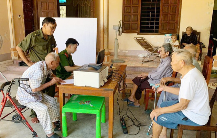 Đối với các trường hợp đảng viên cao tuổi, sức khoẻ yếu, không thể đi lại, công an các xã đã tổ chức các tổ công tác lưu động, bố trí máy móc, thiết bị đến tận nhà để phục vụ.