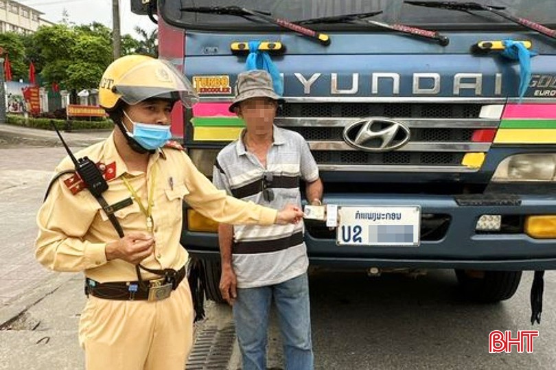 CSGT Công an TX Kỳ Anh phát hiện tài xế quê Quảng Bình điều khiển xe đầu kéo biển Lào dương tính với ma túy.