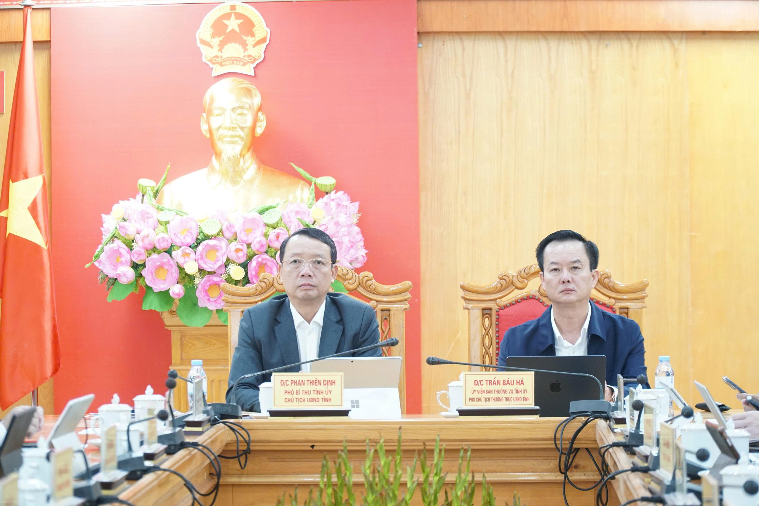 Điểm cầu Hà Tĩnh do  đồng chí Phan Thiên Định – Phó Bí thư Tỉnh ủy, Chủ tịch UBND tỉnh và đồng chí Trần Báu Hà – Phó Chủ tịch UBND tỉnh chủ trì; cùng dự có các đồng chí Phó Chủ tịch UBND tỉnh, Ủy viên UBND tỉnh, Thủ trưởng các ngành, đơn vị liên quan.