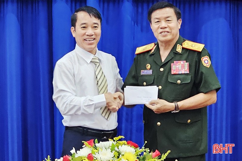 Lãnh đạo Bộ CHQS tỉnh Hà Tĩnh trao số tiền 30 triệu đồng hỗ trợ Bolikhămxay làm lễ truy điệu, tưởng niệm các liệt sỹ.