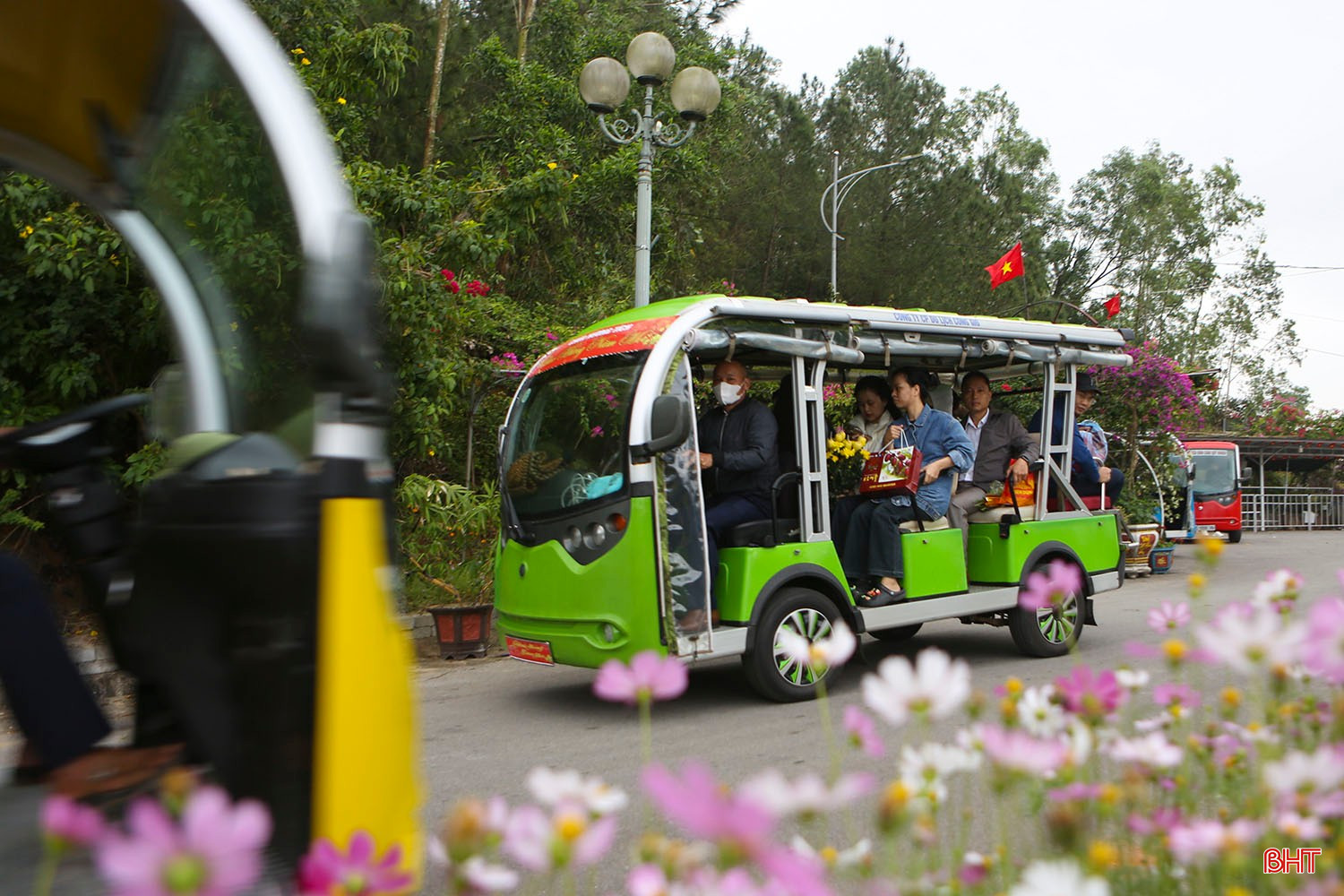 20 chiếc xe điện hoạt động liên tục chở khách lên chùa.