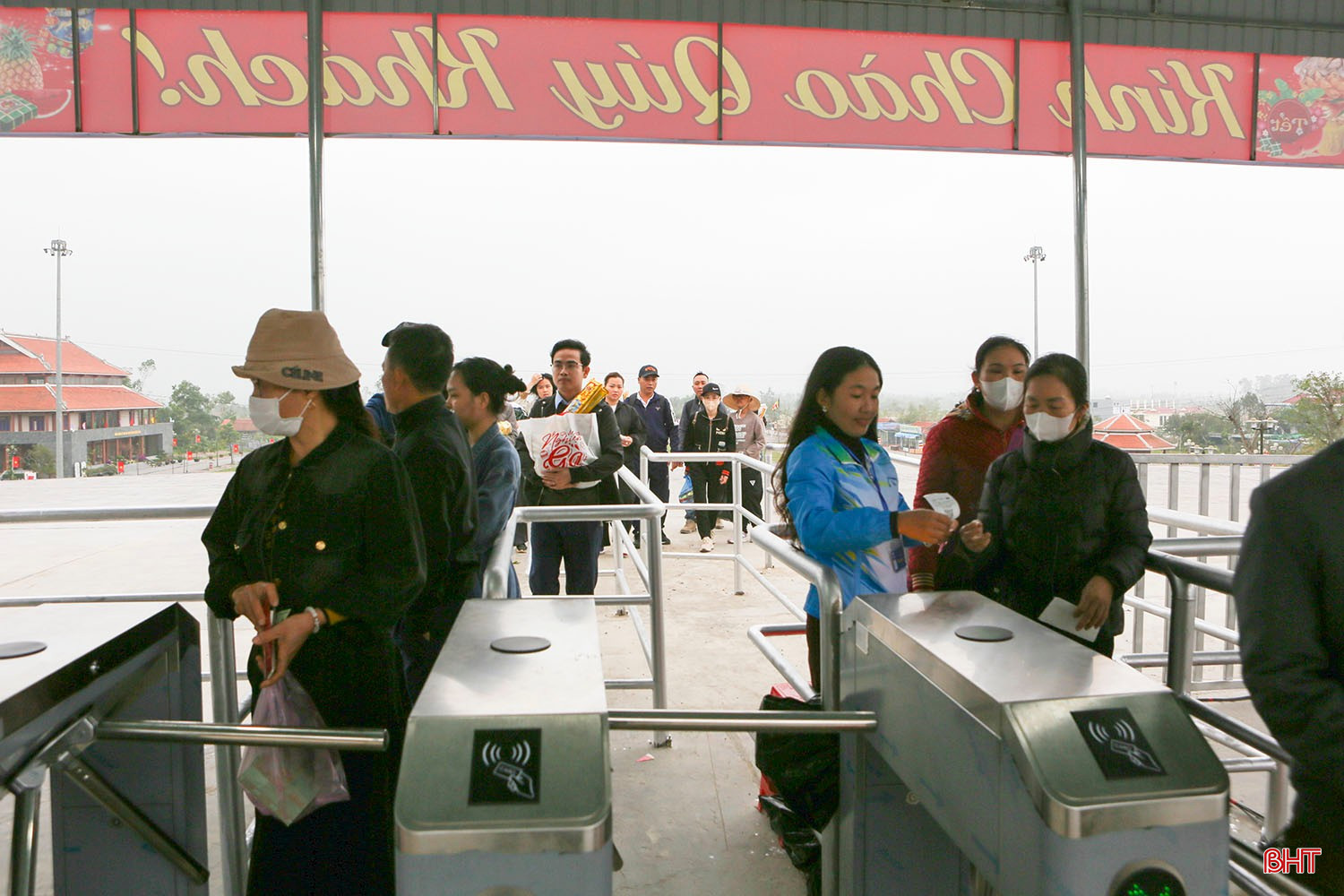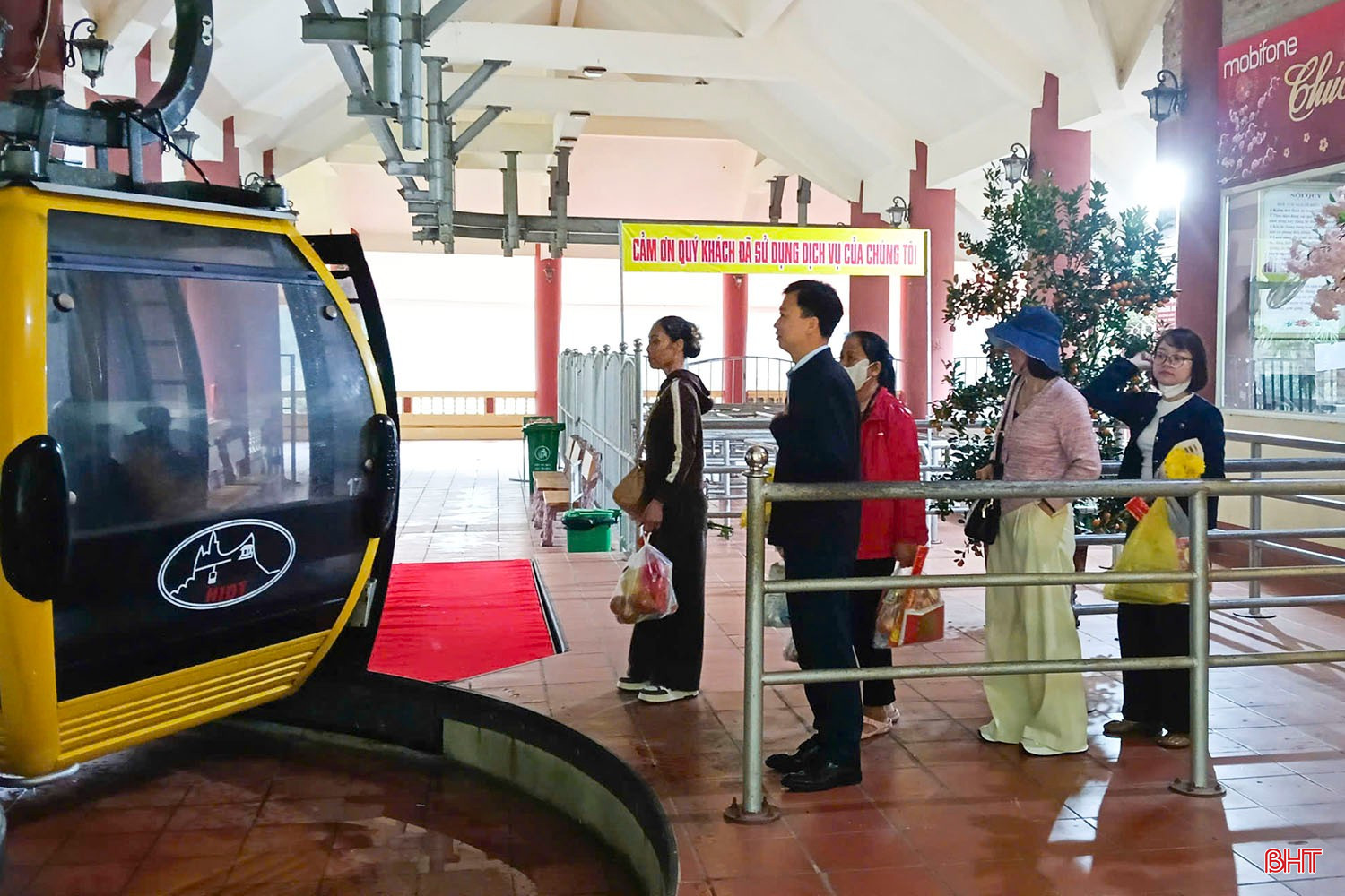 Từ cổng soát vé đến bến xe điện, dòng người nối nhau lên đỉnh núi Hồng, khám phá "Hoan Châu đệ nhất danh lam".