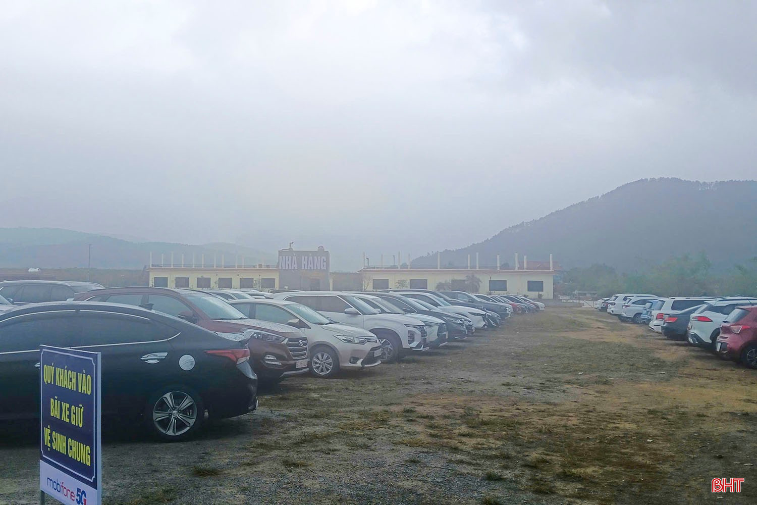 Ngay từ sáng sớm mồng 2 Tết Bính Ngọ, bãi đỗ xe KDL chùa Hương Tích đã gần "kín" chỗ bởi hàng trăm chiếc xe ô tô của du khách từ khắp mọi miền về tham quan, vãn cảnh chùa.