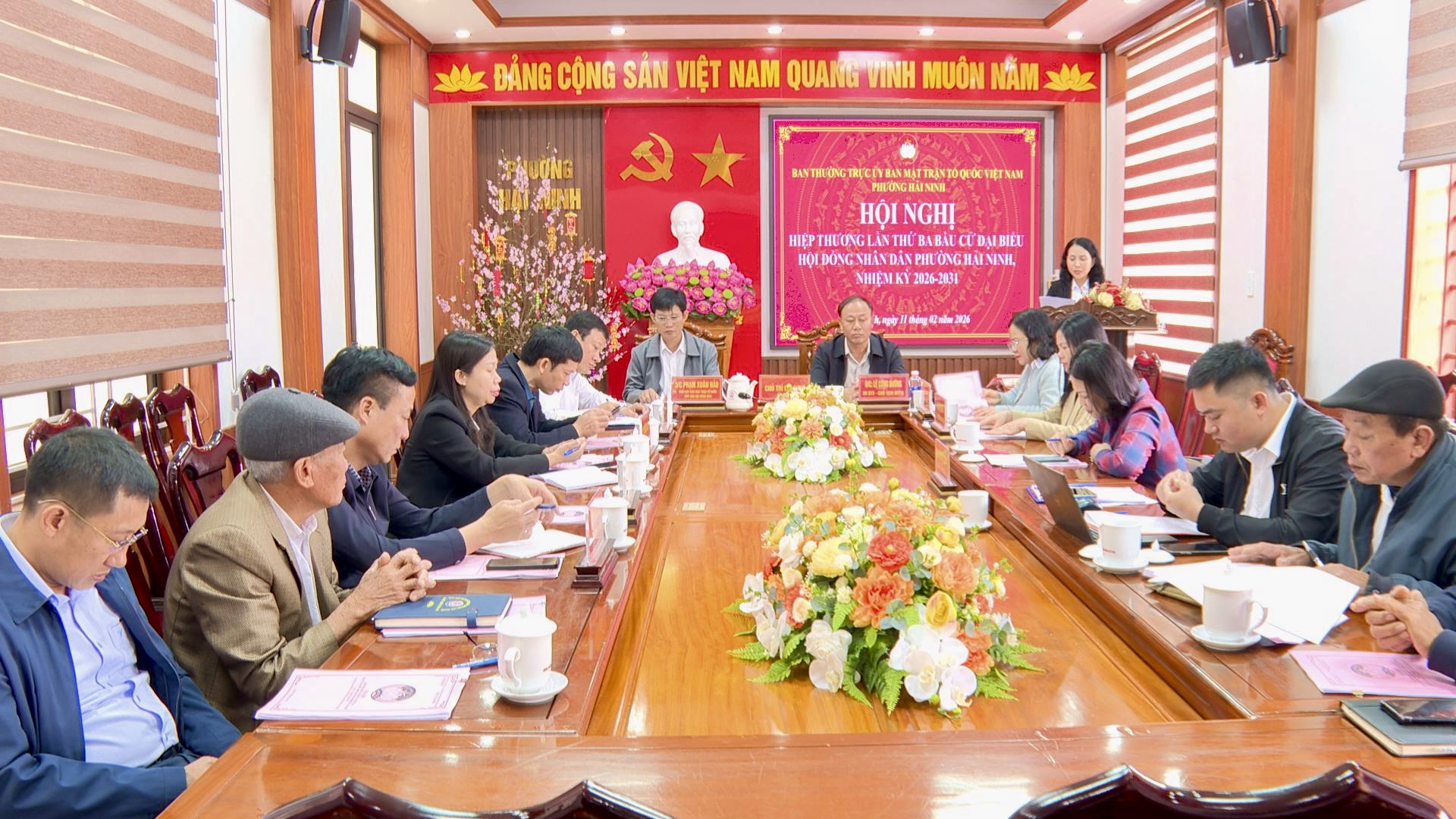Sáng 11/2, Ban Thường trực Ủy ban MTTQ Việt Nam phường Hải Ninh tổ chức Hội nghị hiệp thương lần thứ ba để lựa chọn, lập danh sách những người đủ tiêu chuẩn ứng cử đại biểu HĐND phường, nhiệm kỳ 2026-2031. Các đồng chí Thường trực, Ban Thường vụ Đảng ủy, ban ngành liên quan dự hội nghị.