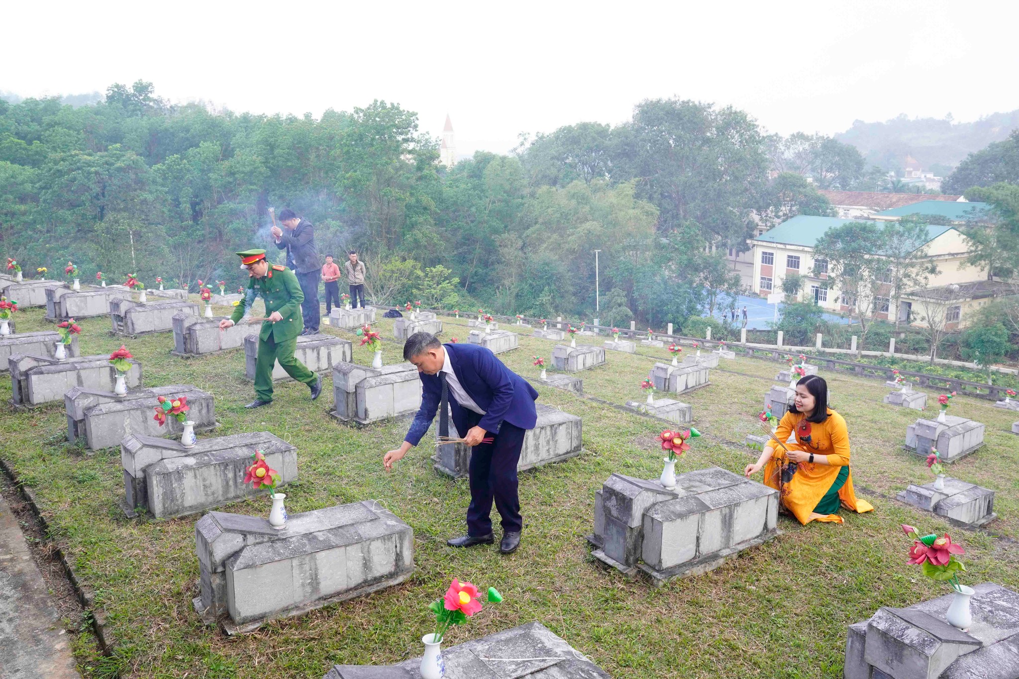 Tiếp đó, đoàn đến dâng hoa, dâng hương tại Nghĩa trang liệt sĩ Nầm. Trong phút mặc niệm trang nghiêm, các đại biểu bày tỏ lòng thành kính tưởng nhớ và biết ơn sâu sắc đối với các Anh hùng liệt sĩ đã anh dũng hy sinh vì sự nghiệp giải phóng dân tộc, thống nhất đất nước, bảo vệ Tổ quốc và làm nghĩa vụ quốc tế cao cả. Nghĩa trang hiện là nơi an nghỉ của hơn 1.200 liệt sĩ, trong đó có nhiều quân tình nguyện và chuyên gia Việt Nam từng tham gia thực hiện nghĩa vụ quốc tế tại nước bạn Lào.