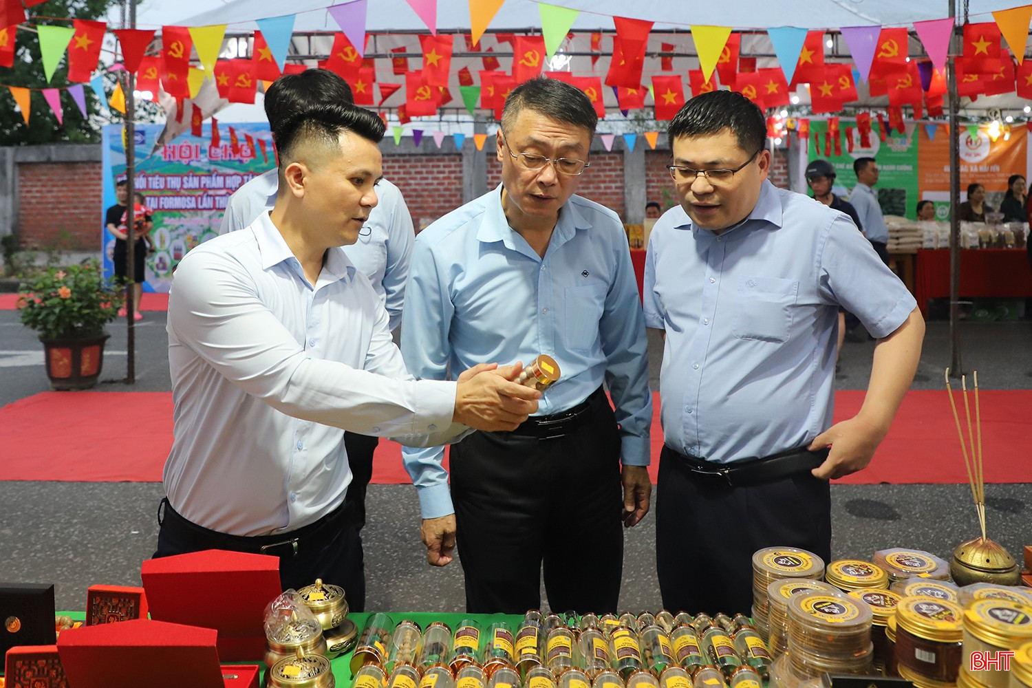 Với mục tiêu gia tăng thị phần tiêu thụ cho các sản phẩm OCOP, sản phẩm nông, lâm, thủy sản do khu vực kinh tế tập thể, HTX, tổ hợp tác sản xuất, Liên minh HTX tỉnh Hà Tĩnh đã phối hợp với Formosa Hà Tĩnh mở gần 20 gian hàng tại KKT Vũng Áng.