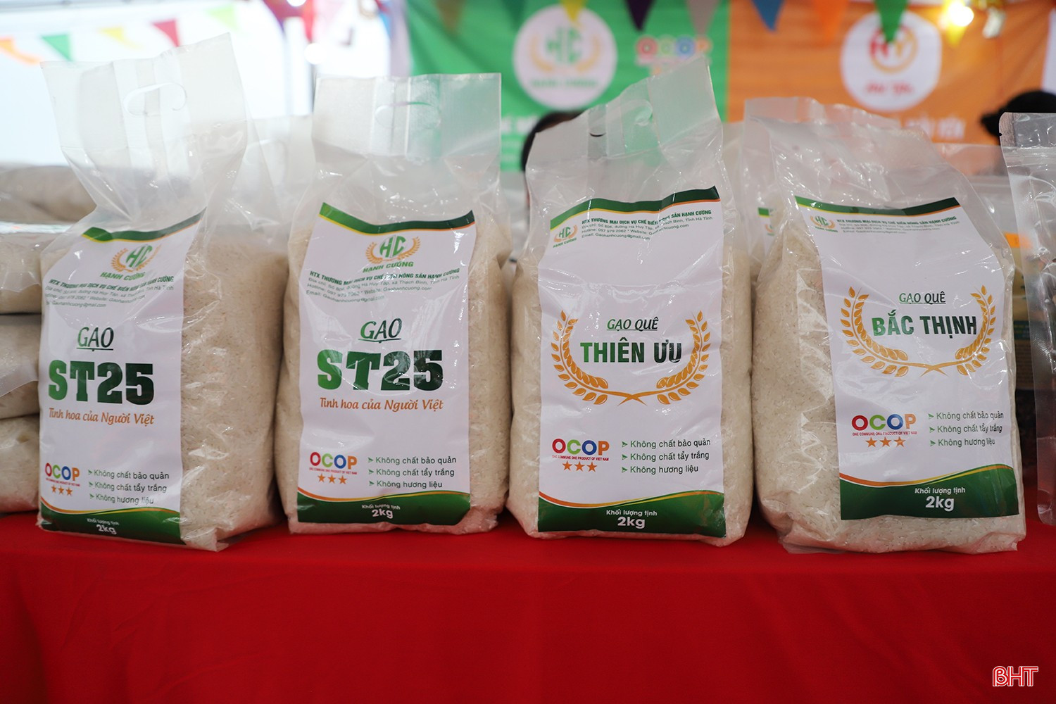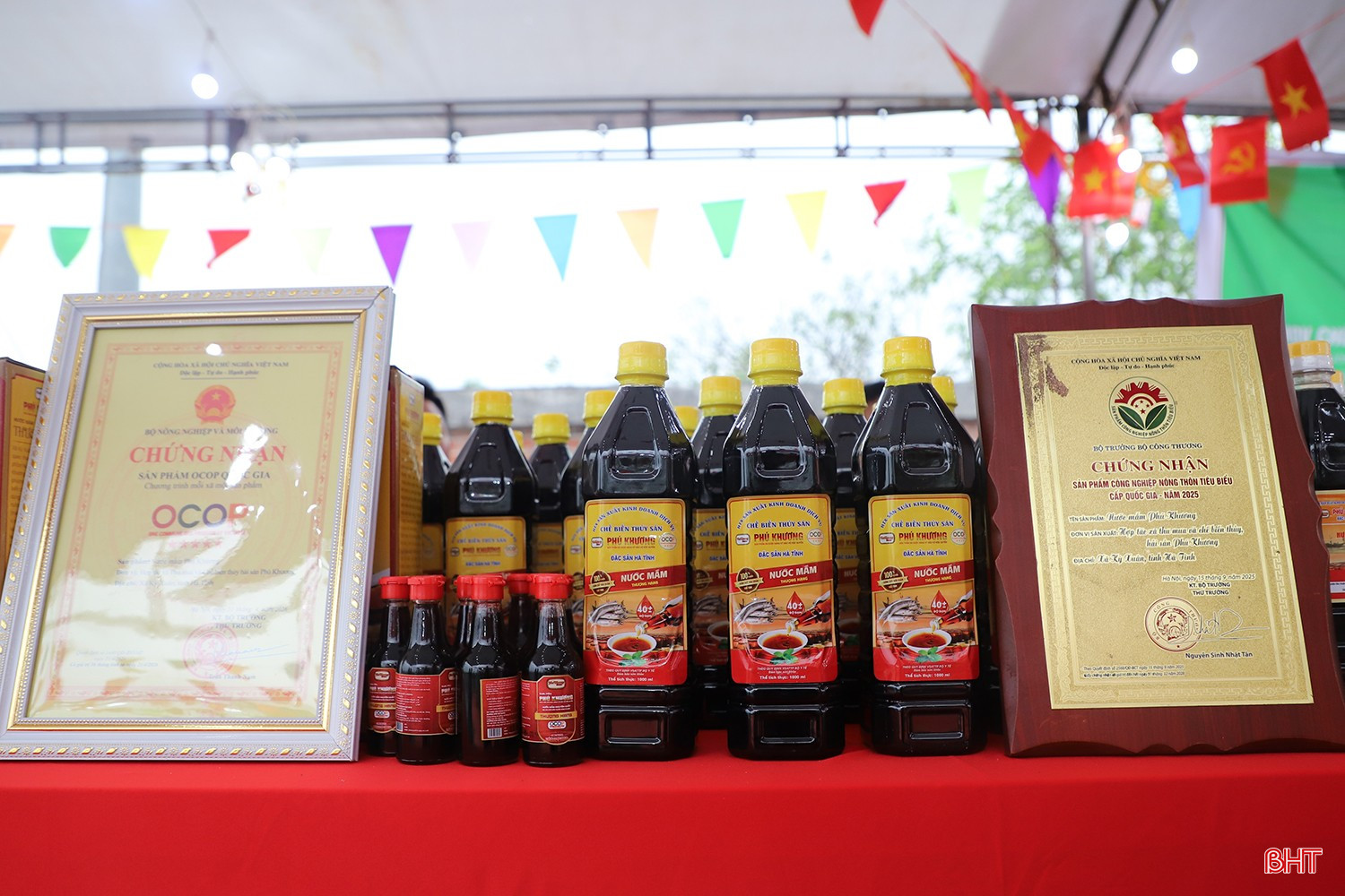 Các sản phẩm trưng bày, quảng bá tại hội chợ là những sản phẩm chất lượng, nhiều sản phẩm đã được chứng nhận OCOP 3 sao, 4 sao cấp tỉnh như: nước mắm Phú Khương, nước mắm Luận Nghiệp, trầm hương Hiền Linh, giò chả Tiến Giáp, gạo Hạnh Cường...