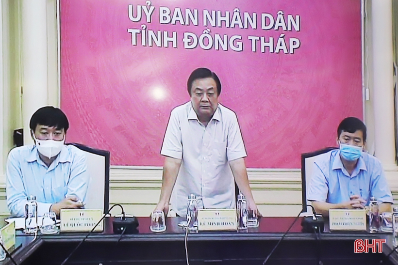 Bộ trưởng Bộ NN&PTNT Lê Minh Hoan chủ trì hội nghị tại điểm cầu tỉnh Đồng Tháp (Ảnh chụp màn hình).