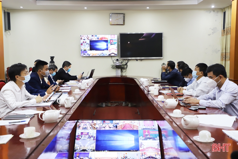 Phó Bí thư Thường trực Tỉnh ủy Trần Thế Dũng, Phó Chủ tịch UBND tỉnh Đặng Ngọc Sơn chủ trì điểm cầu Hà Tĩnh.