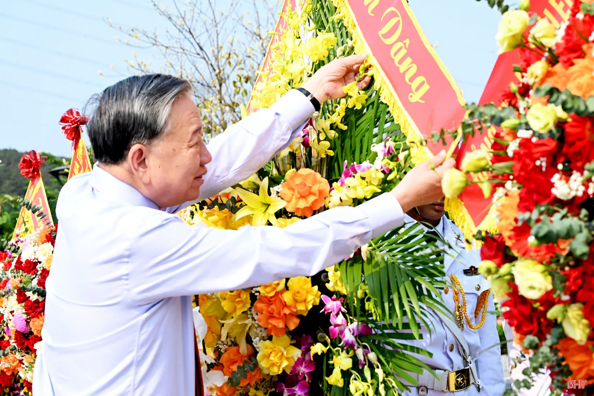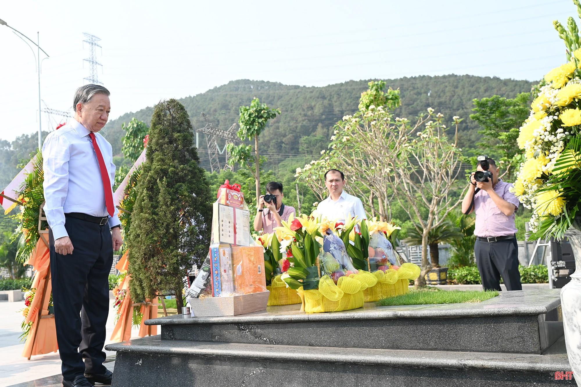 Trước anh linh Tổng Bí thư Hà Huy Tập, đồng chí Tô Lâm - Tổng Bí thư, Chủ tịch nước cùng đoàn công tác Trung ương và lãnh đạo tỉnh Hà Tĩnh thành kính dâng hoa, dâng hương bày tỏ lòng tri ân sâu sắc đối với những cống hiến to lớn, sự hy sinh cao cả của đồng chí Hà Huy Tập vì sự nghiệp cách mạng của Đảng, của dân tộc ta.