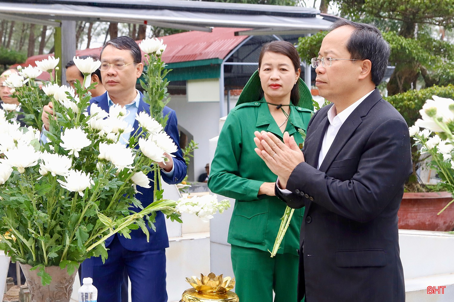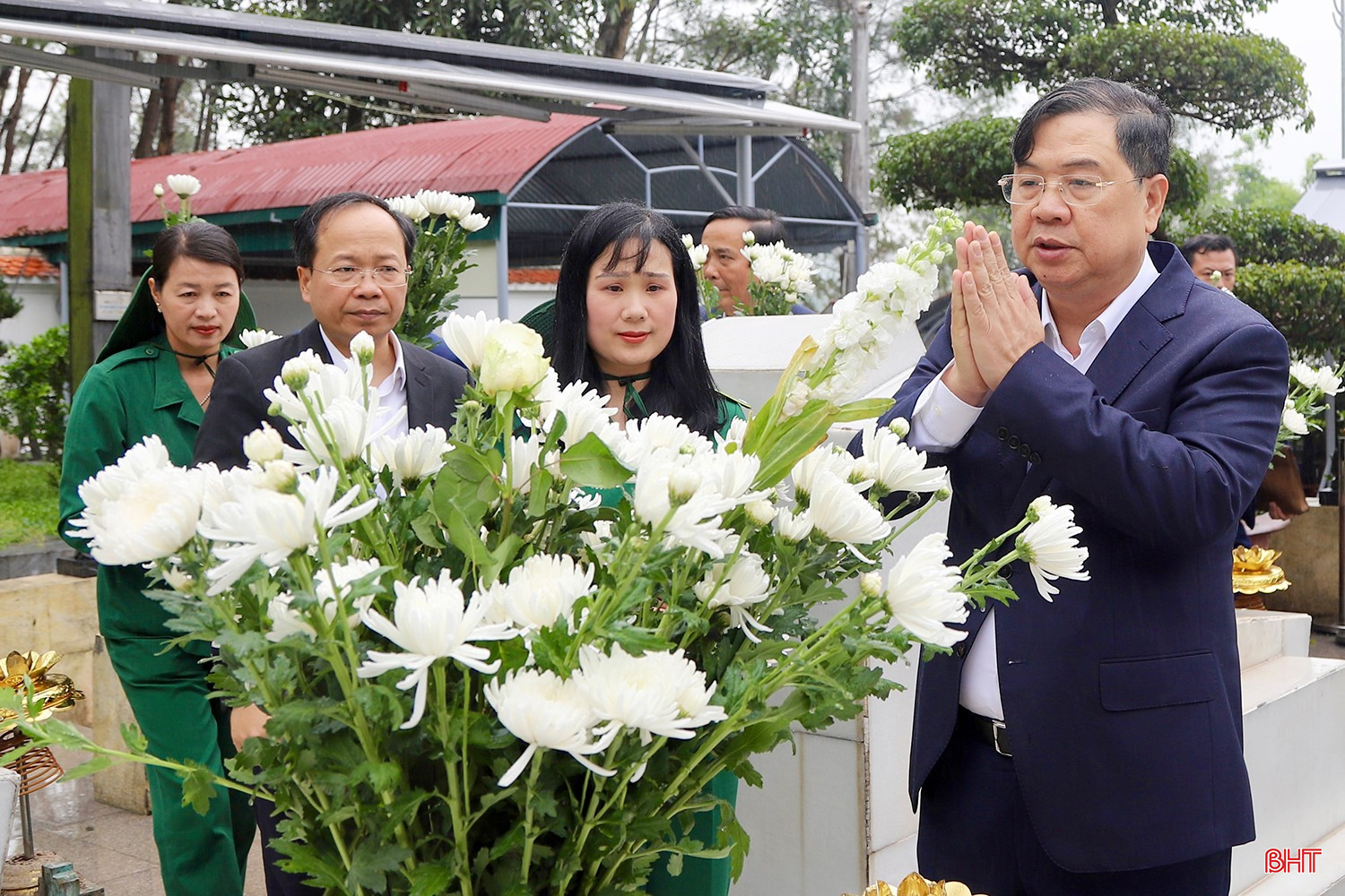 Bí thư Tỉnh ủy Nguyễn Duy Lâm và các đồng chí trong đoàn dâng hương trước phần mộ Tổng Bí thư Hà Huy Tập.