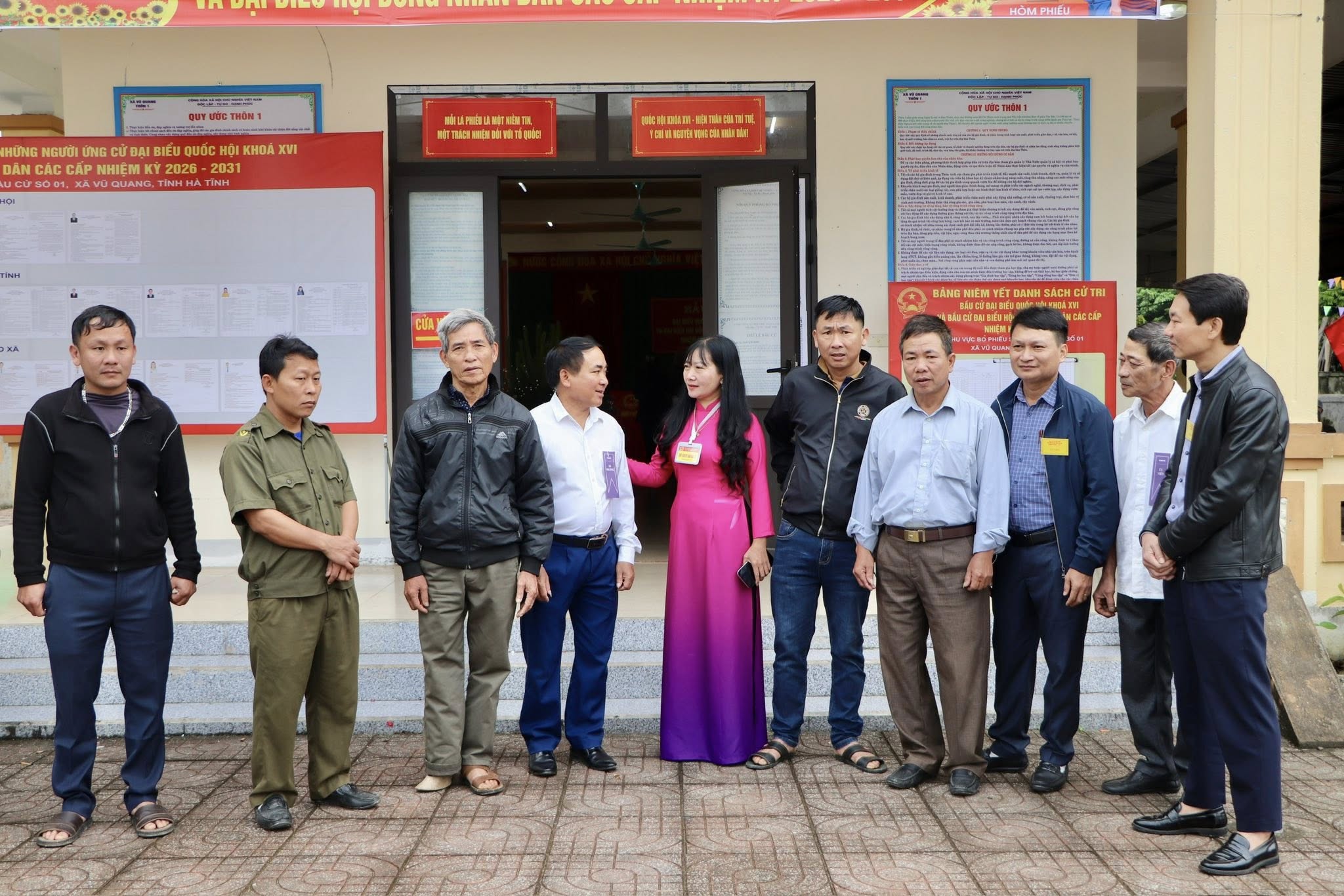 Lãnh đạo xã Vũ Quang kiểm tra công tác bầu cử tại các khu vực bỏ phiếu