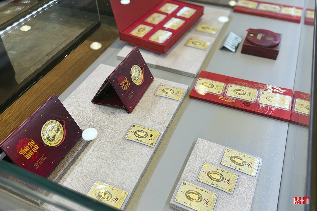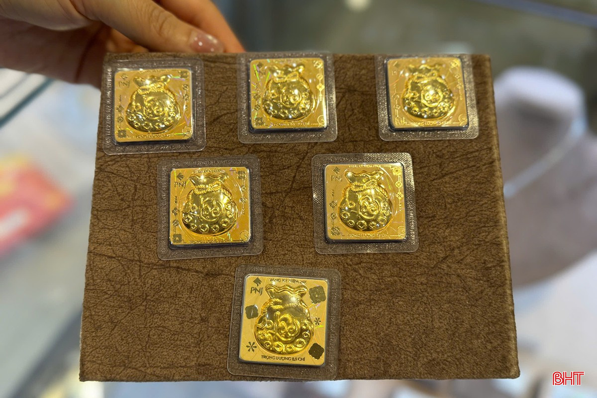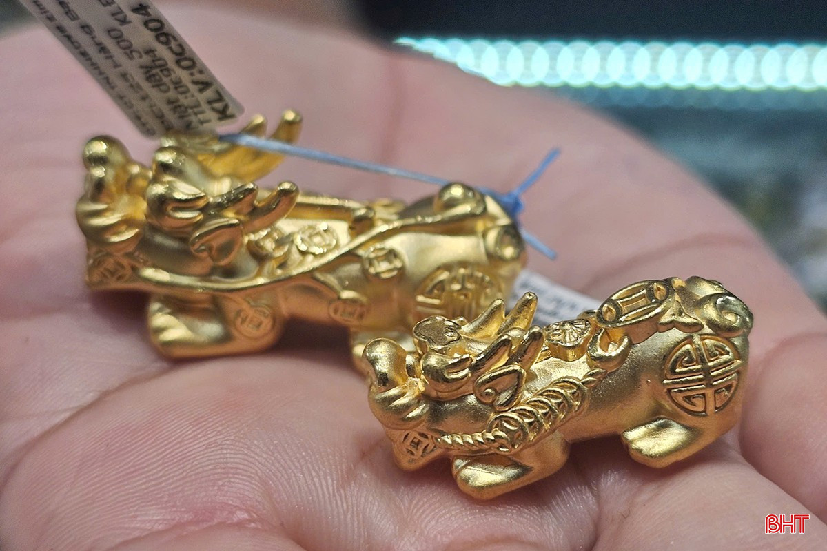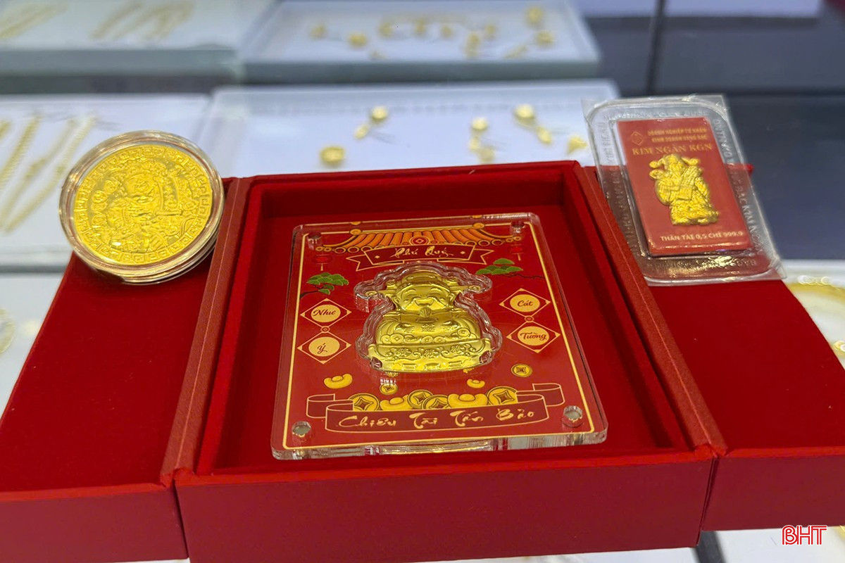 Nhằm phục vụ nhu cầu mua vàng ngày vía Thần Tài (mùng 10 tháng Giêng) của người dân, nhiều cửa hàng kinh doanh vàng bạc tại Hà Tĩnh đã nhập về các mẫu vàng ép vỉ hình linh vật ngựa, vàng miếng hình ông Thần Tài, nhẫn kim tiền… với thiết kế tinh xảo, mang ý nghĩa tài lộc, may mắn.