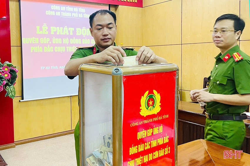 Hưởng ứng phát động của Ban Giám đốc Công an tỉnh, Công an TP Hà Tĩnh cũng đã tổ chức lễ phát động quyên góp, ủng hộ đồng bào các tỉnh phía Bắc chịu thiệt hại do bão số 3 cho toàn bộ cán bộ, chiến sĩ đơn vị tham gia.
