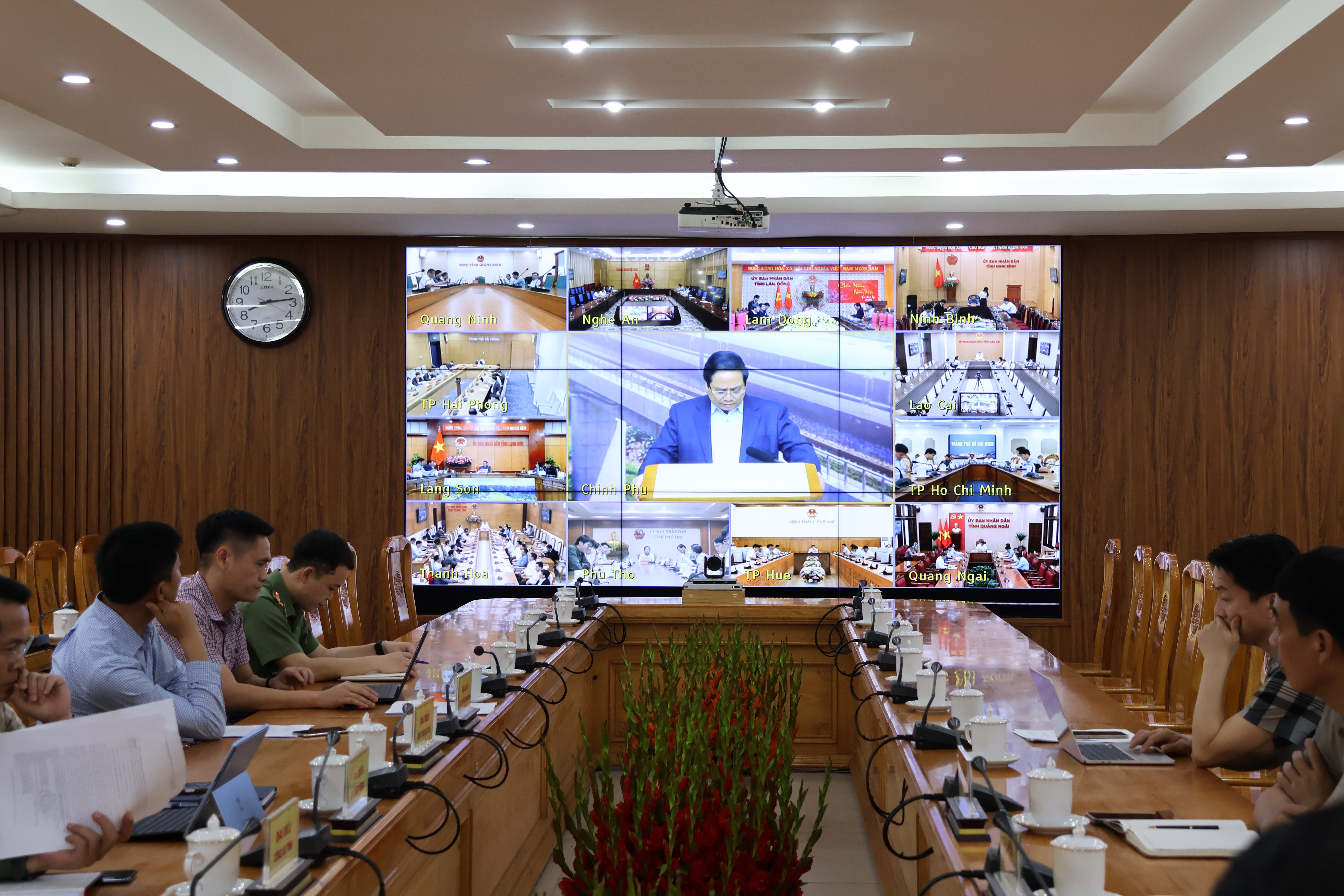 Lãnh đạo UBND tỉnh điều hành điểm cầu Hà Tĩnh.