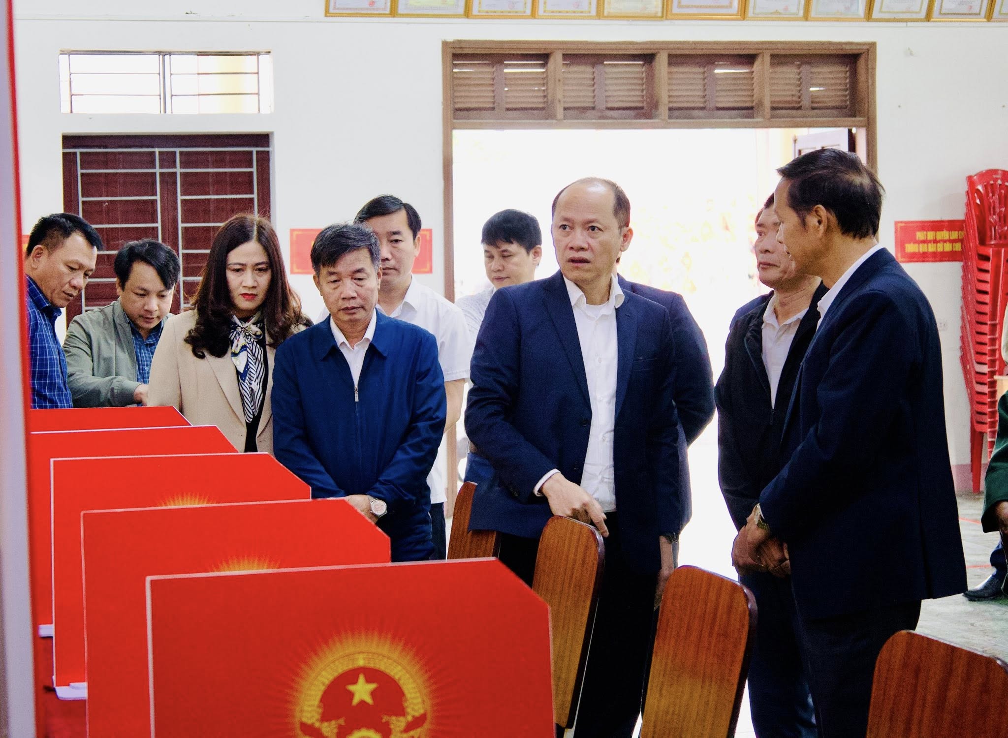 Tại buổi làm việc, đoàn đã trực tiếp kiểm tra công tác chuẩn bị tại khu vực bỏ phiếu số 1 thôn Kim Tân và khu vực bỏ phiếu số 6 thôn Đông Thịnh. Các nội dung được tập trung kiểm tra gồm việc bố trí, sắp xếp khu vực bỏ phiếu; niêm yết danh sách cử tri, danh sách người ứng cử; chuẩn bị tài liệu phục vụ bầu cử cũng như điều kiện cơ sở vật chất phục vụ ngày bỏ phiếu.
