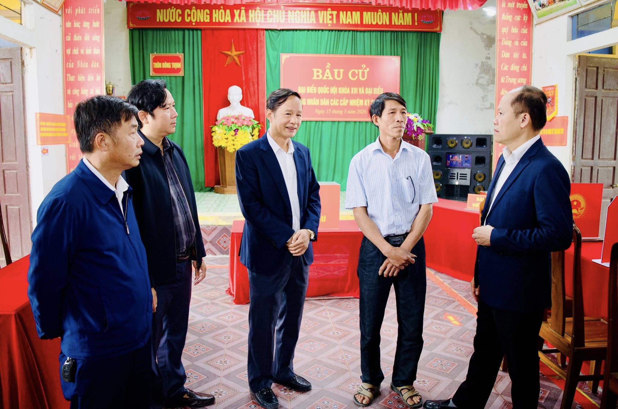 Phó Bí thư Thường trực Tỉnh ủy Nguyễn Hồng Lĩnh kiểm tra công tác chuẩn bị tại khu vực bỏ phiếu ở xã Hồng Lộc