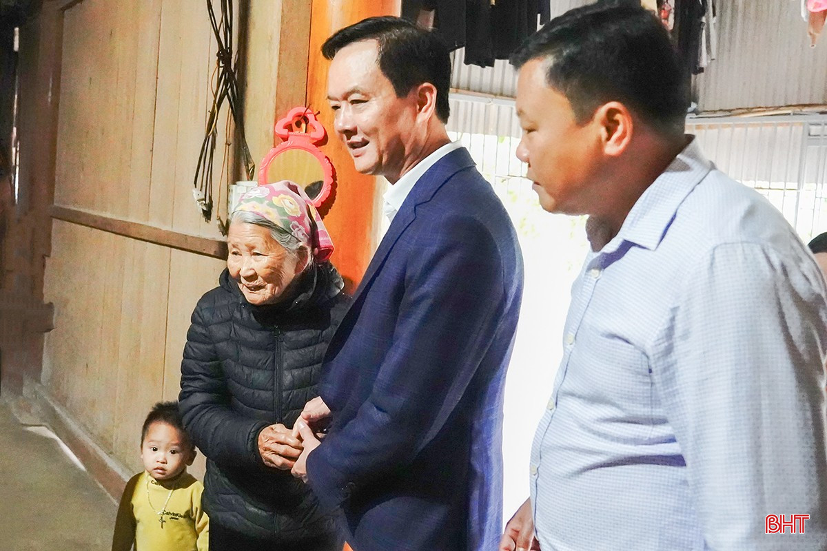Phó Chủ tịch Thường trực UBND tỉnh Trần Báu Hà và đoàn cũng đến thăm hỏi, chúc thọ cụ Nguyễn Thị Khai (SN 1926 thôn Kim Sơn, xã Phúc Trạch), năm nay tròn 100 tuổi.